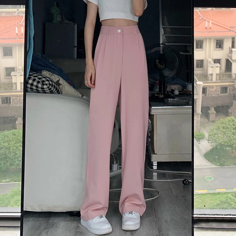 Розовый пиджак классического кроя, осенние тонкие штаны, изысканный стиль, 2024 года, высокая талия, свободный прямой крой, подходит для подростков
