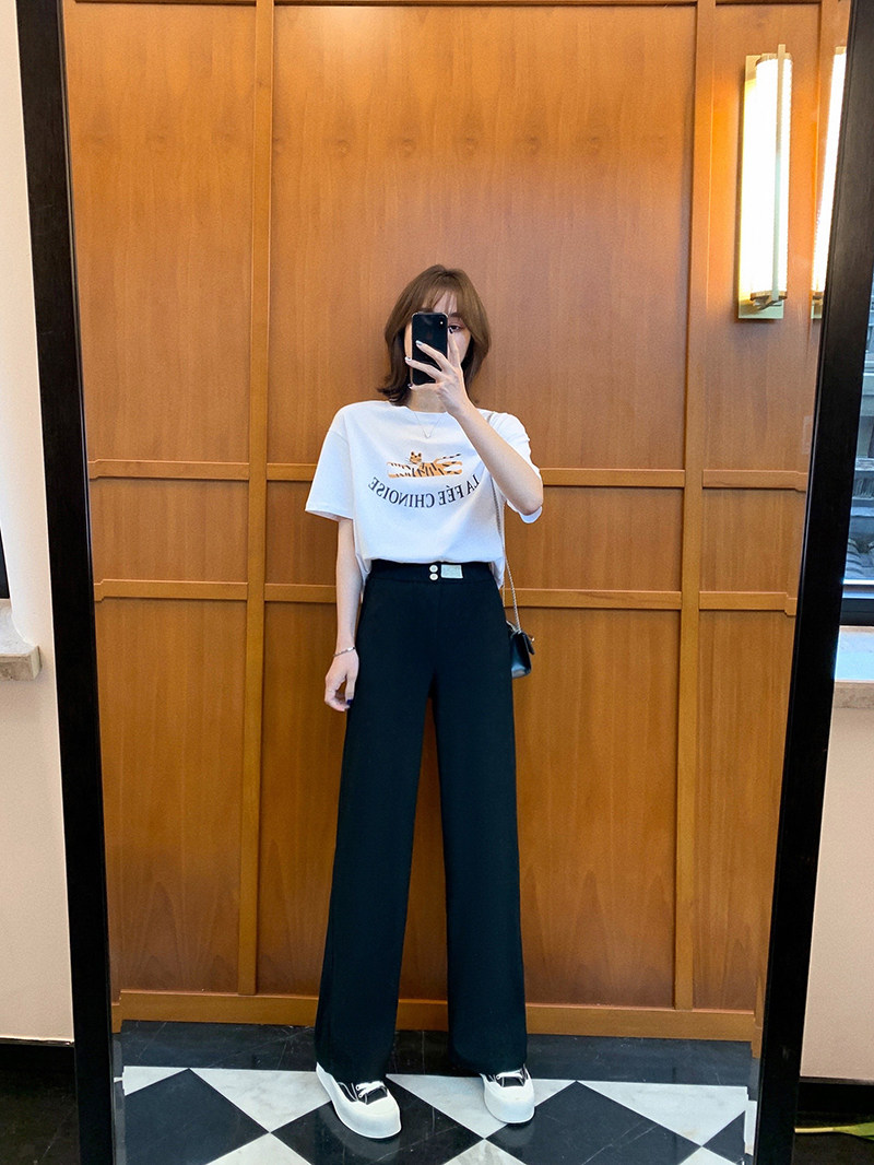 小谷粒 Летние приталенные штаны, свободный прямой крой, высокая талия