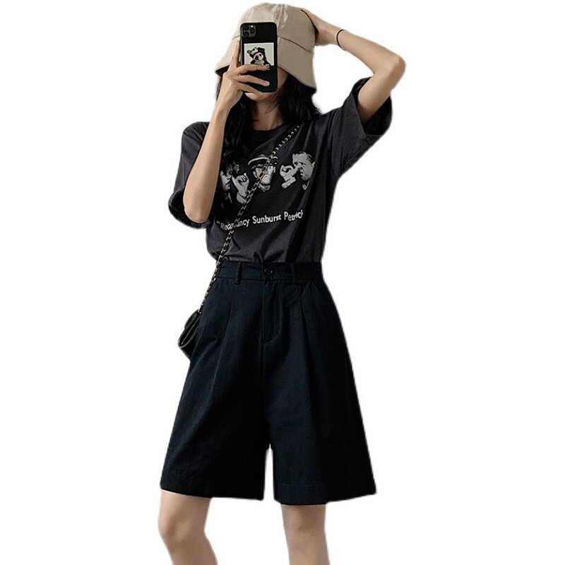 Пиджак классического кроя, шорты, штаны, оверсайз, высокая талия, свободный прямой крой