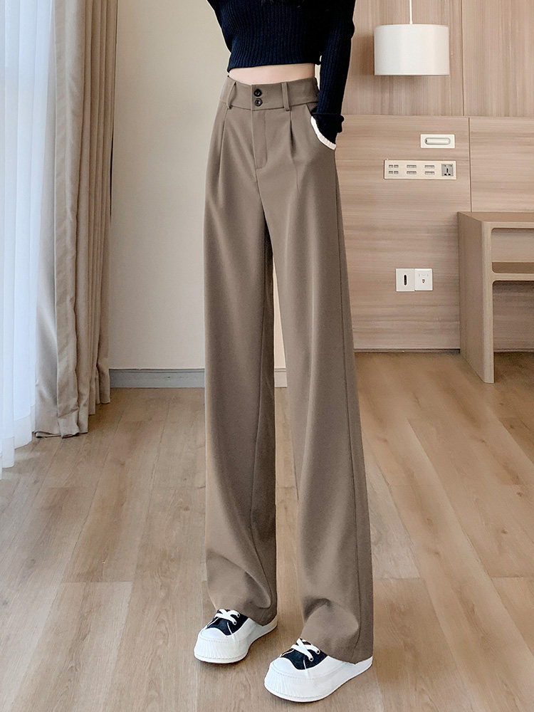 Хаки осенние тонкие штаны, небольшой костюм, высокая талия, свободный прямой крой, подходят для подростков