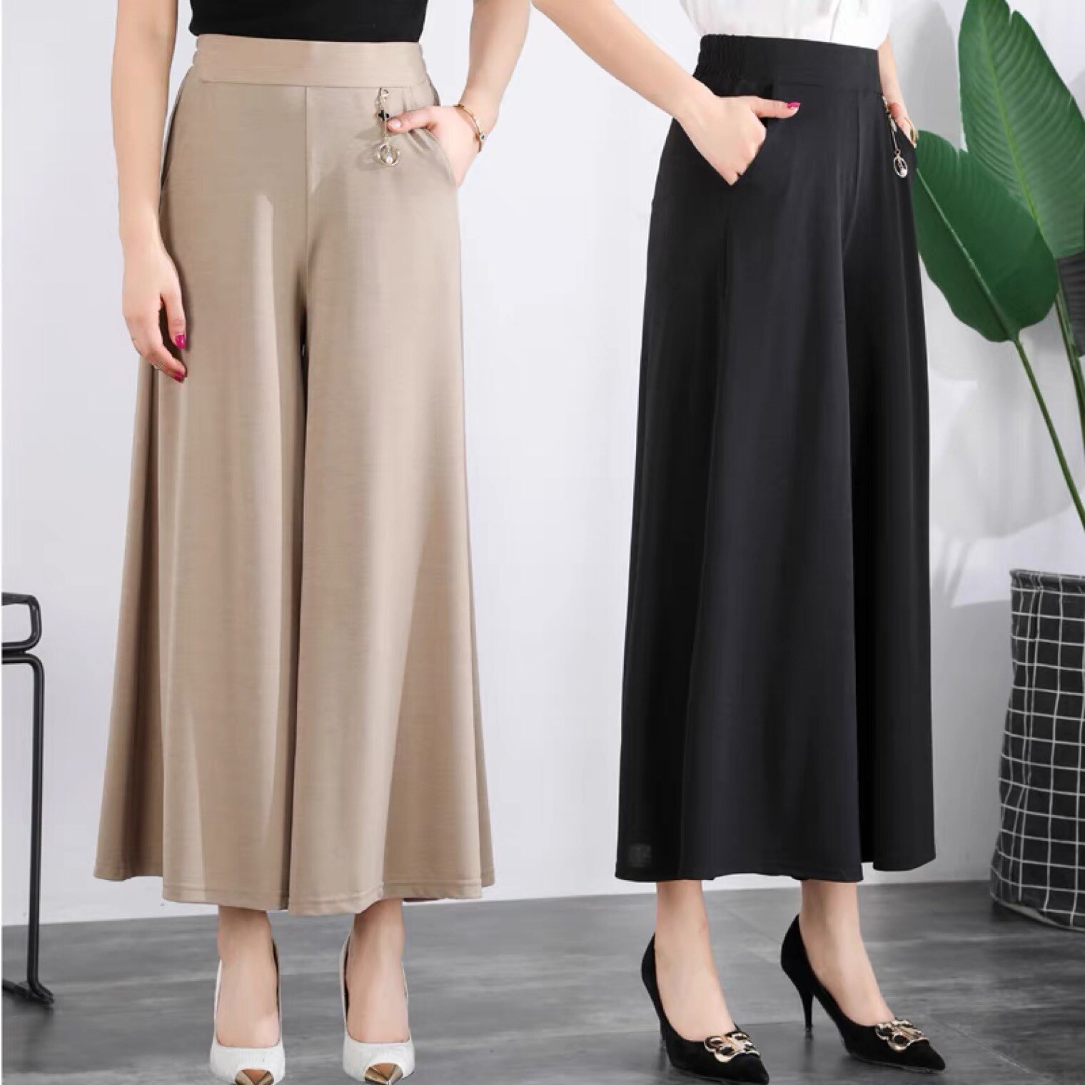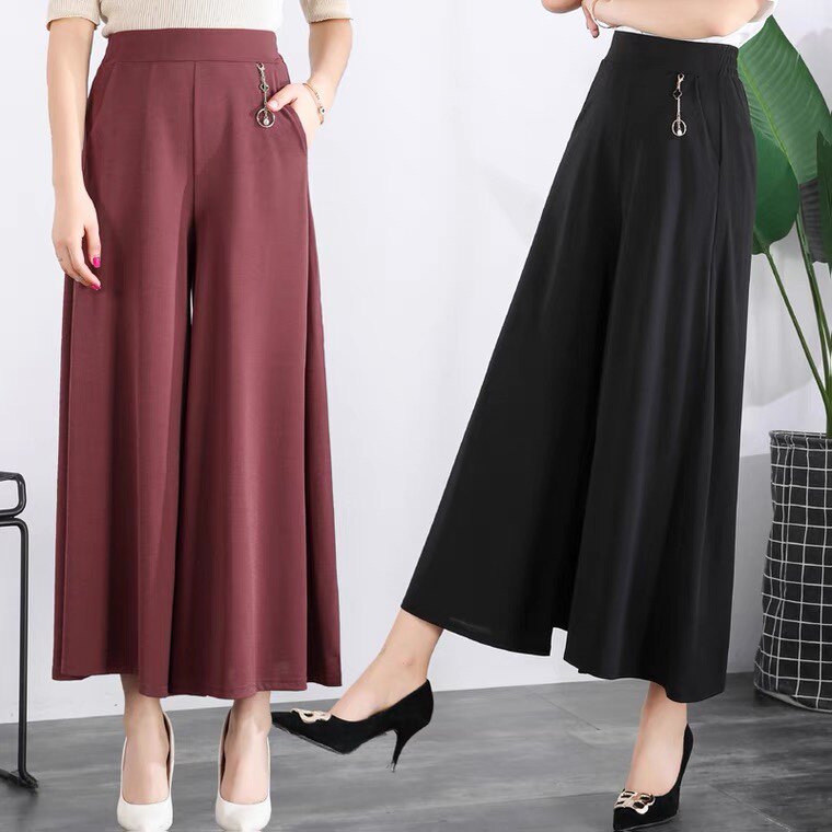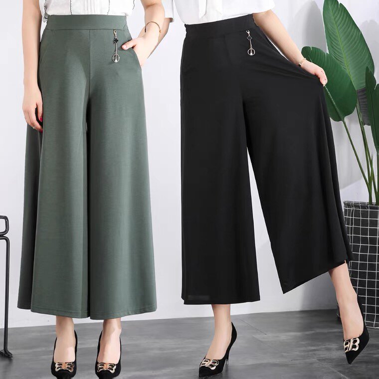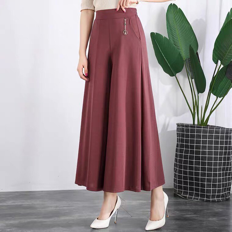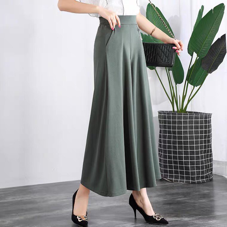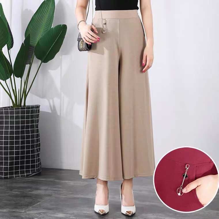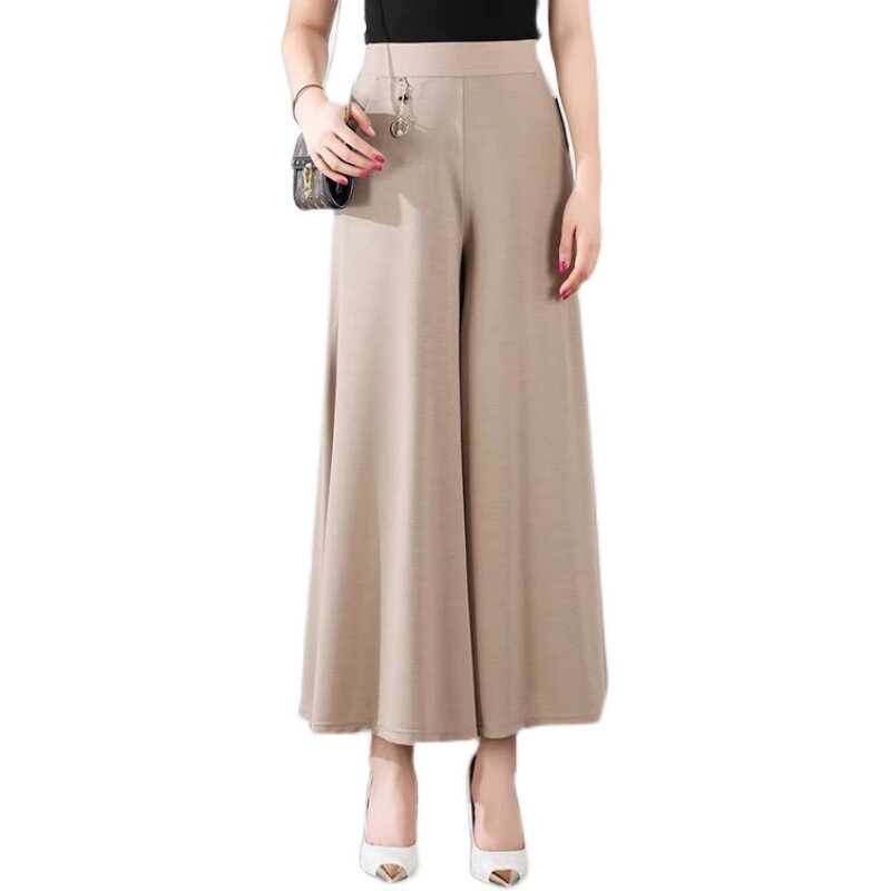 Летняя тонкая юбка, шелковые штаны, свободный крой, высокая талия, для среднего возраста, большой размер