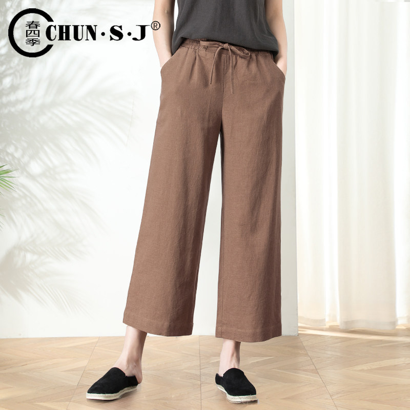 Шелковые тонкие штаны, высокая талия, подходит для подростков, из хлопка и льна, свободный прямой крой