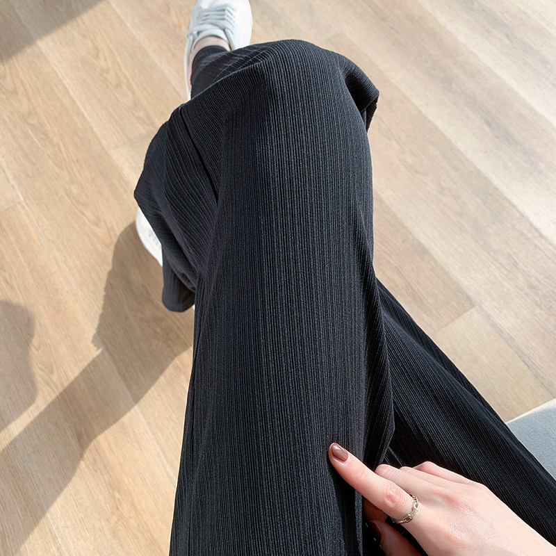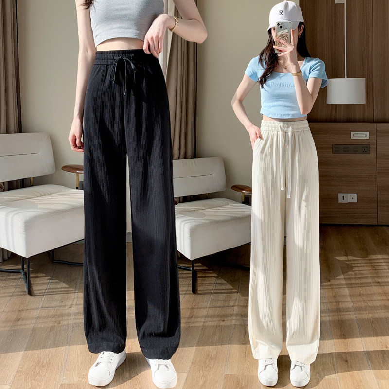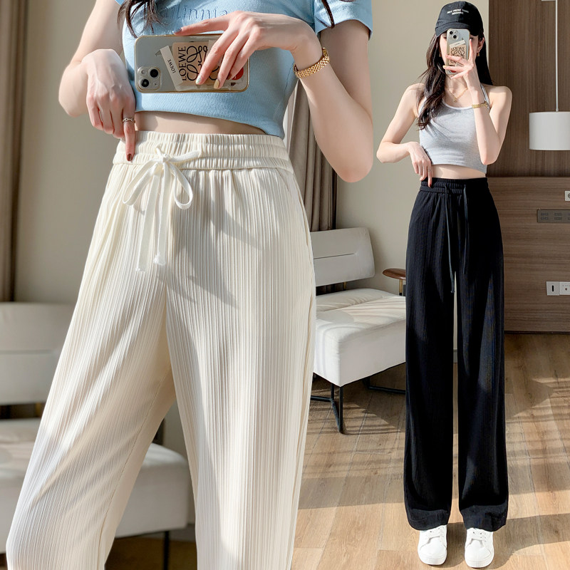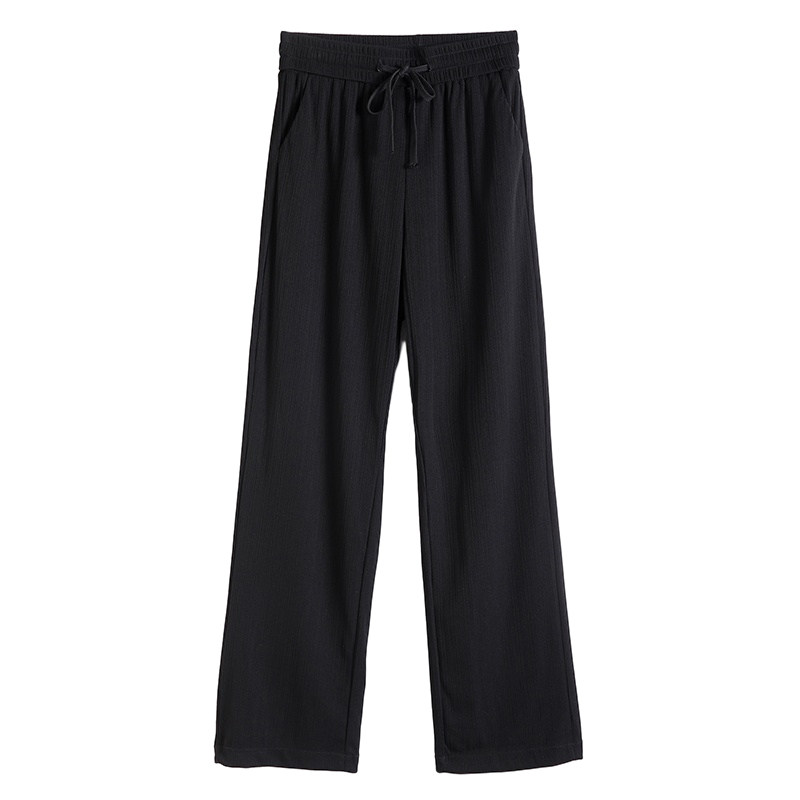 Шелковые тонкие черные трикотажные штаны, эластичная талия, свободный прямой крой, подходят для подростков