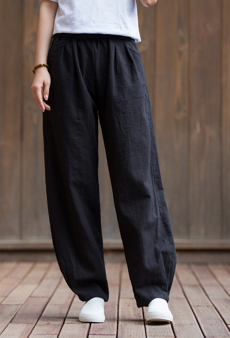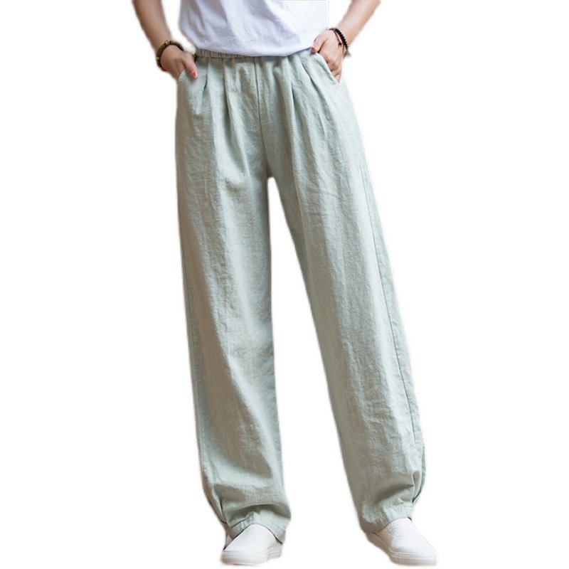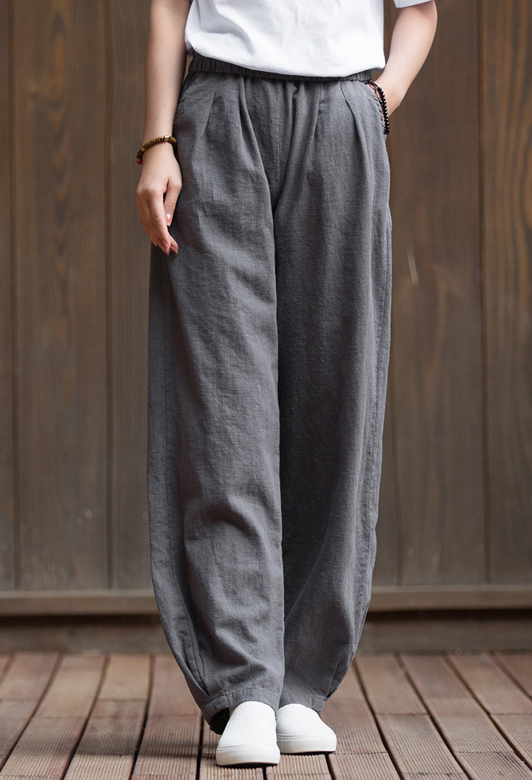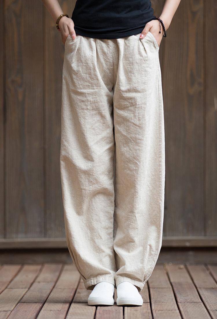 Штаны, лампа, фонарь, из хлопка и льна, оверсайз, свободный крой