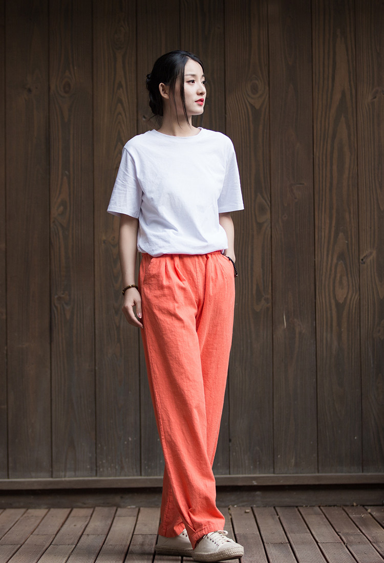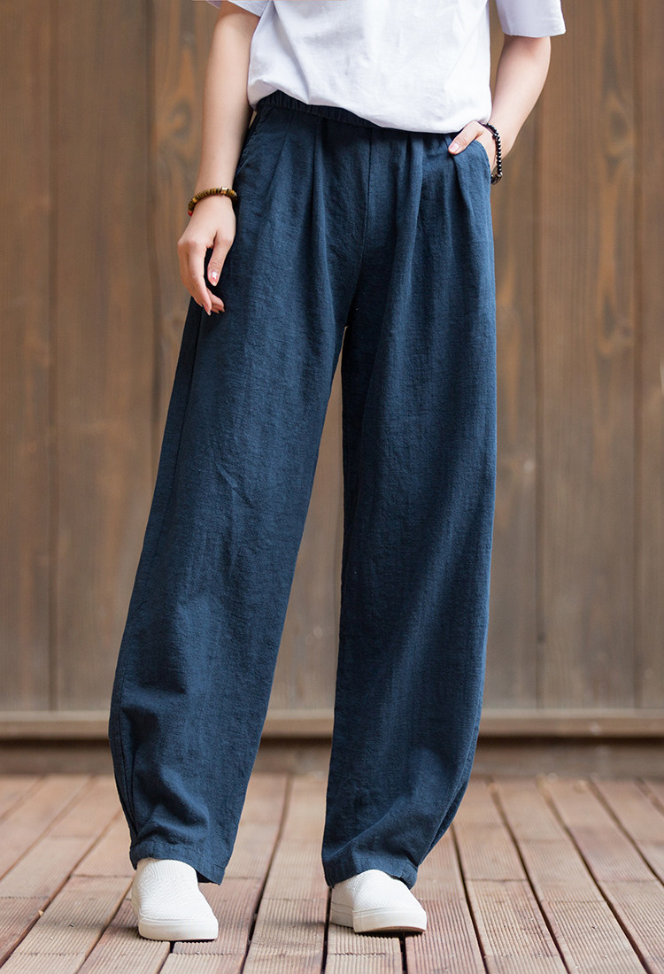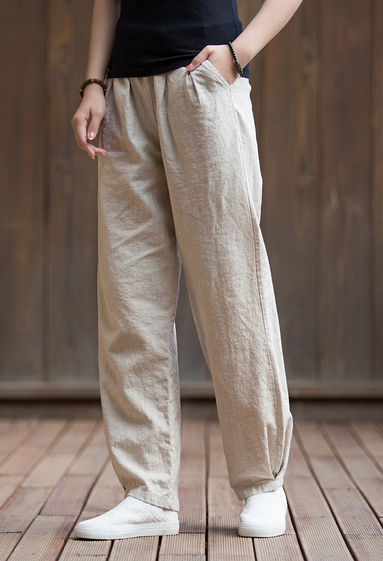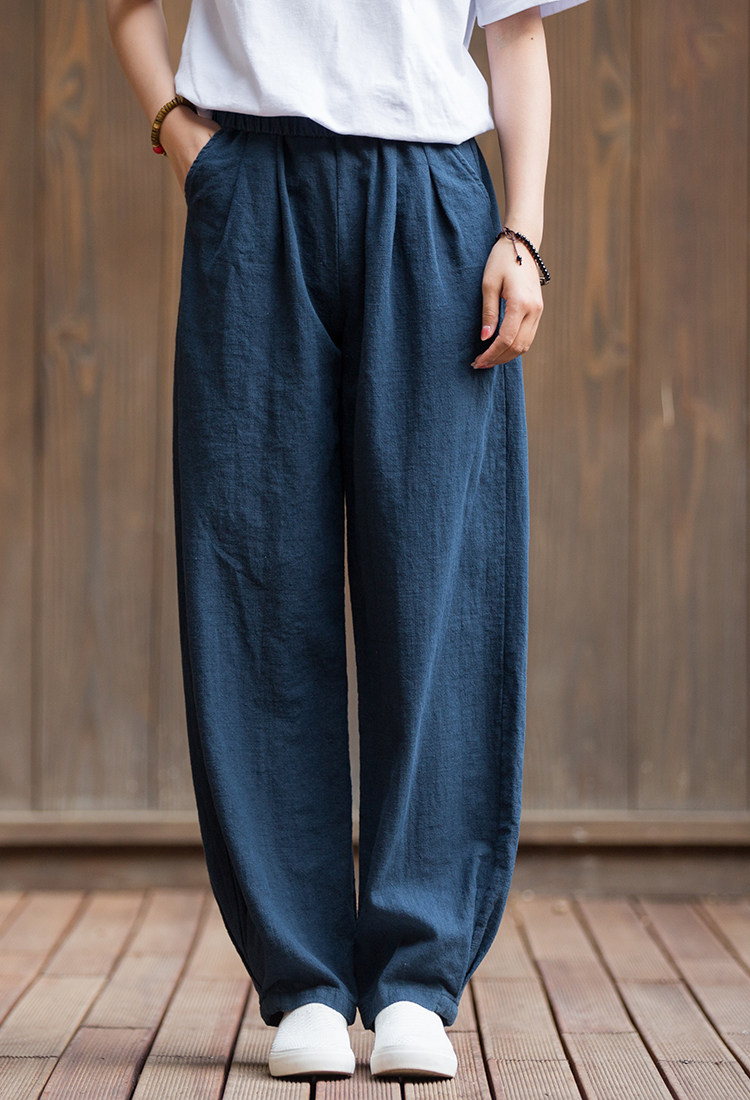 Штаны, лампа, фонарь, из хлопка и льна, оверсайз, свободный крой