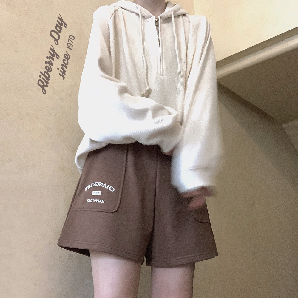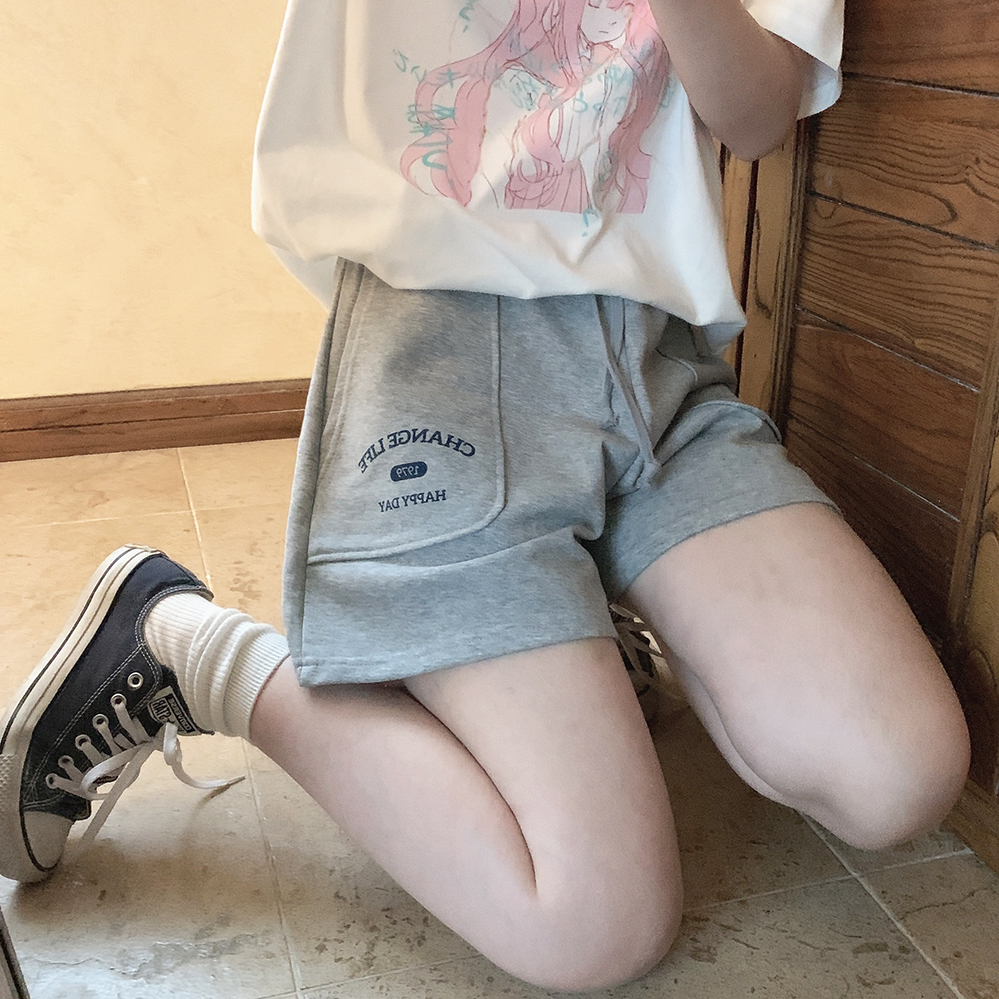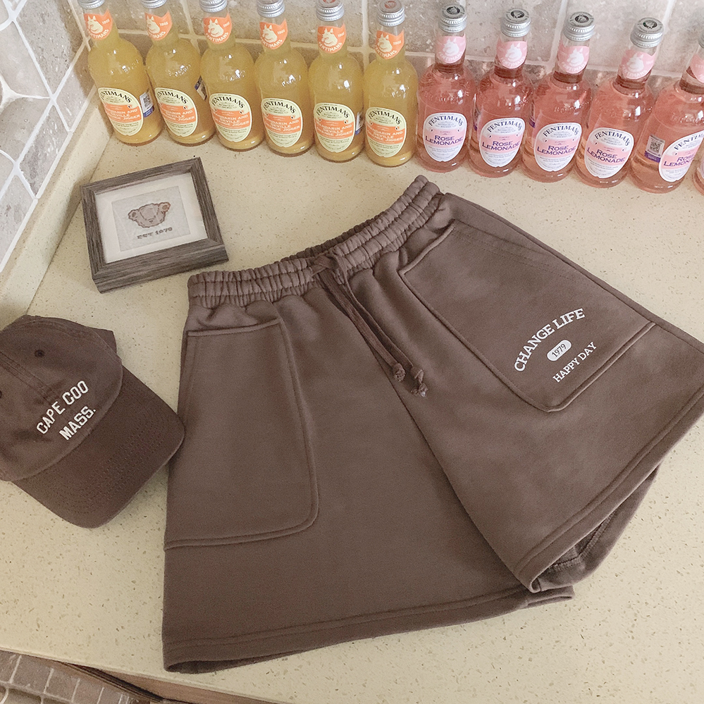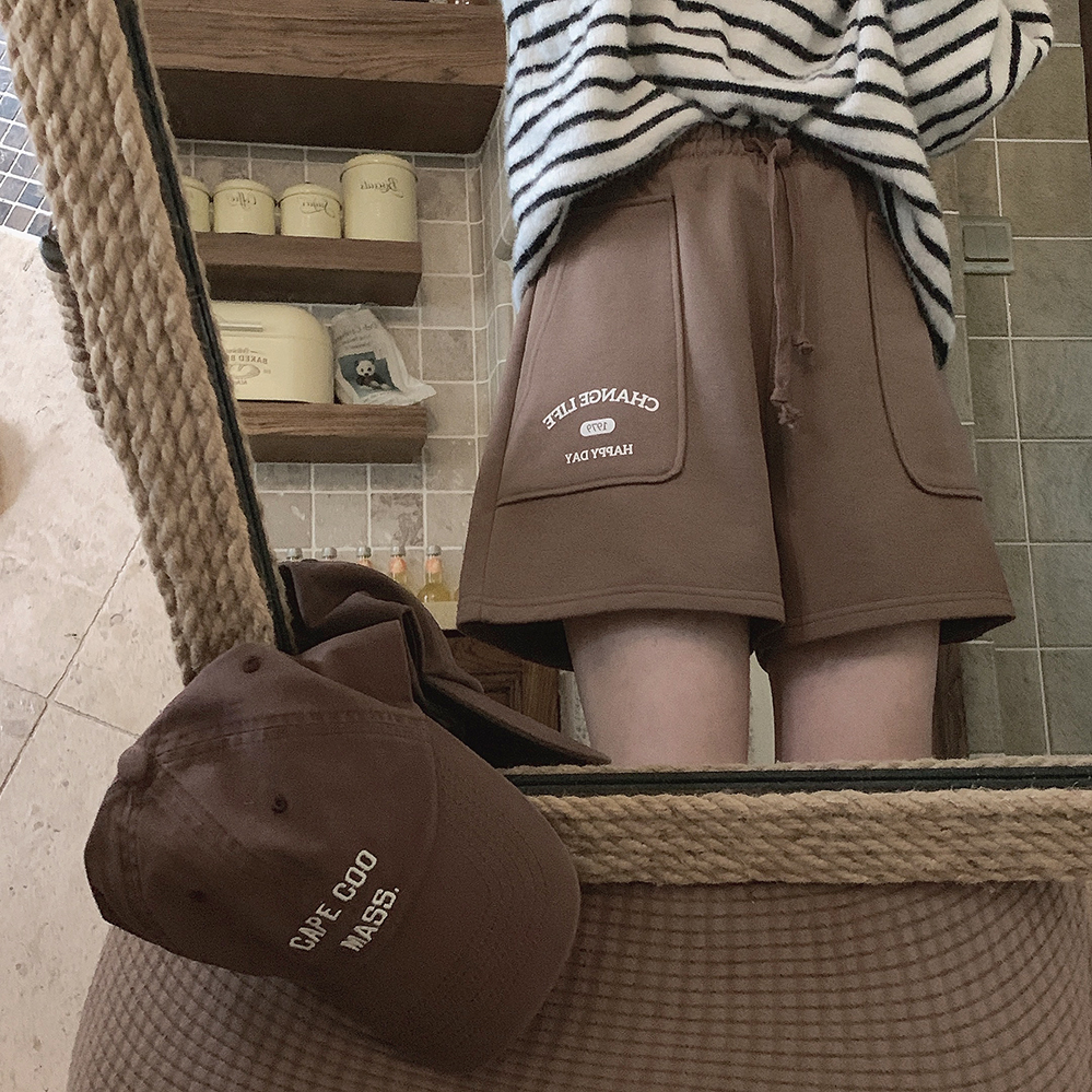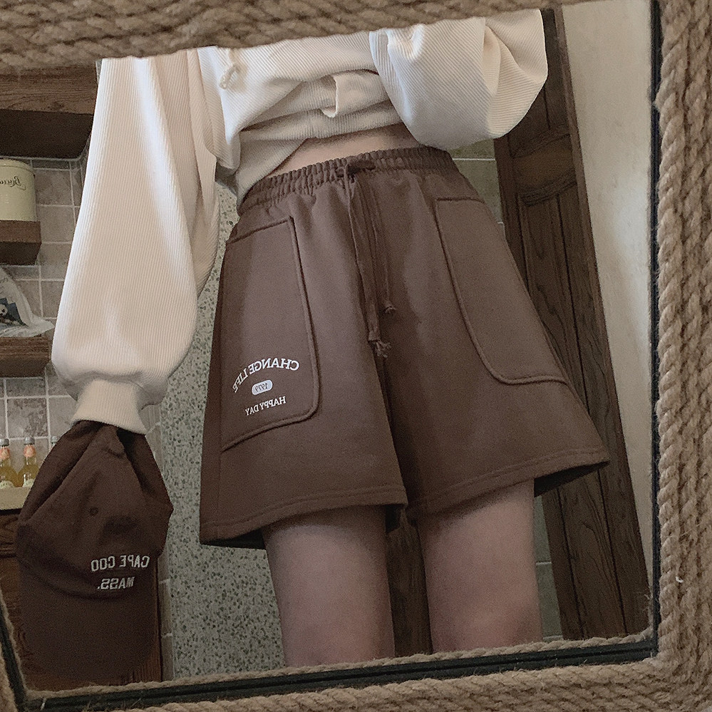 Принт в стиле ретро, вересково-серый и коричневый, эластичная талия, спортивная девушка, широкие махровые шорты W