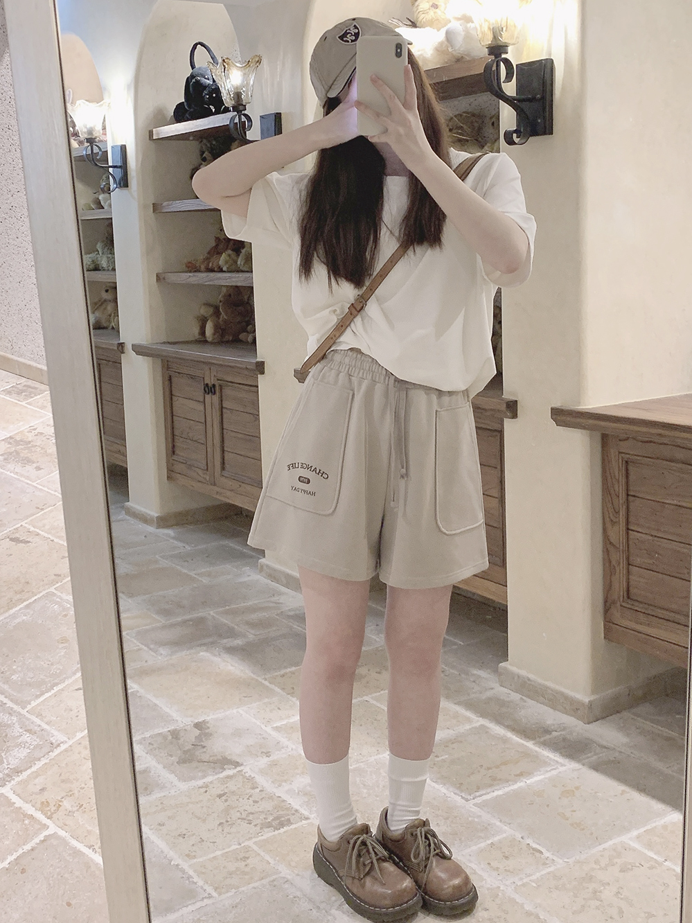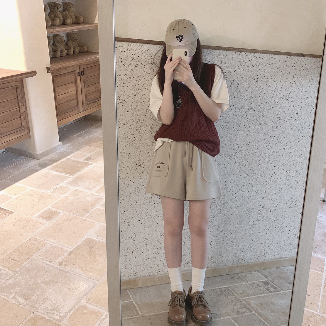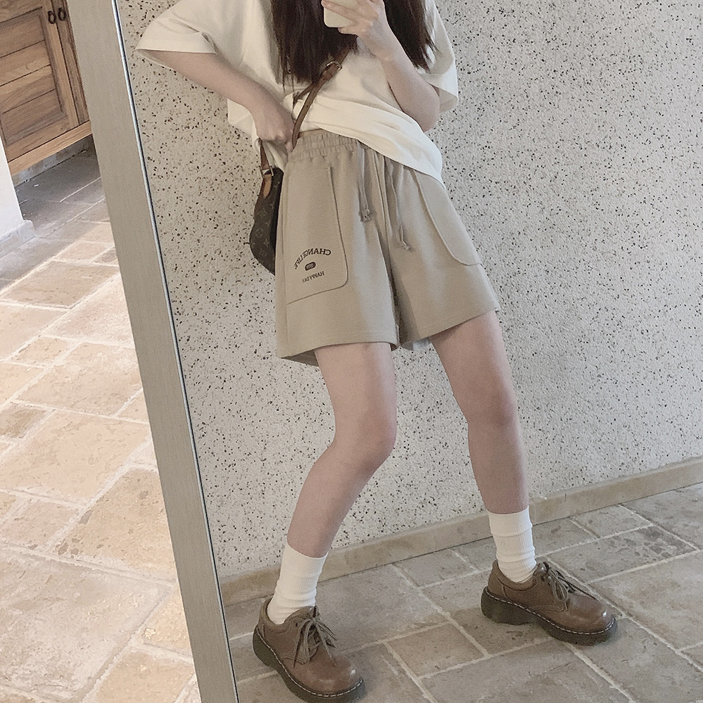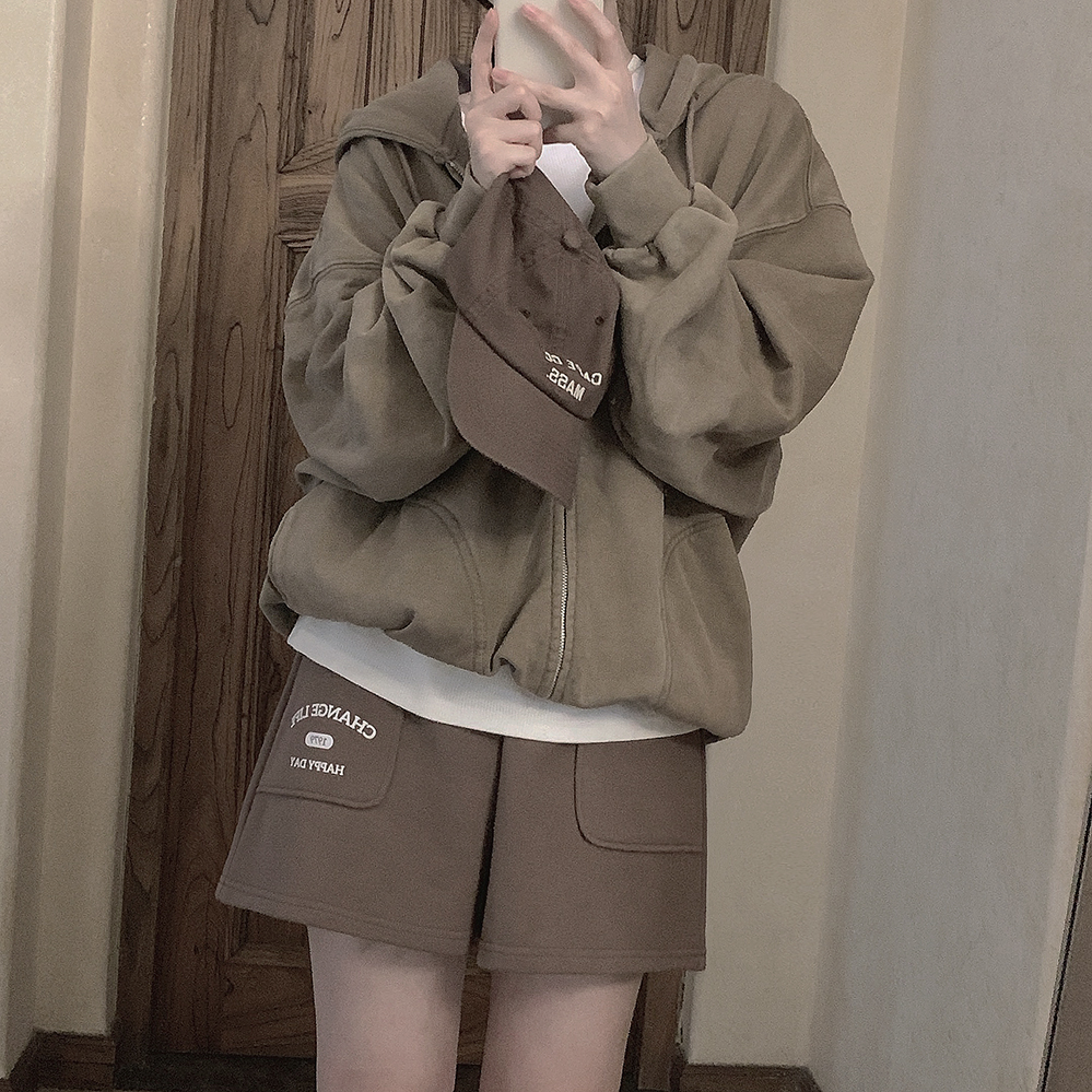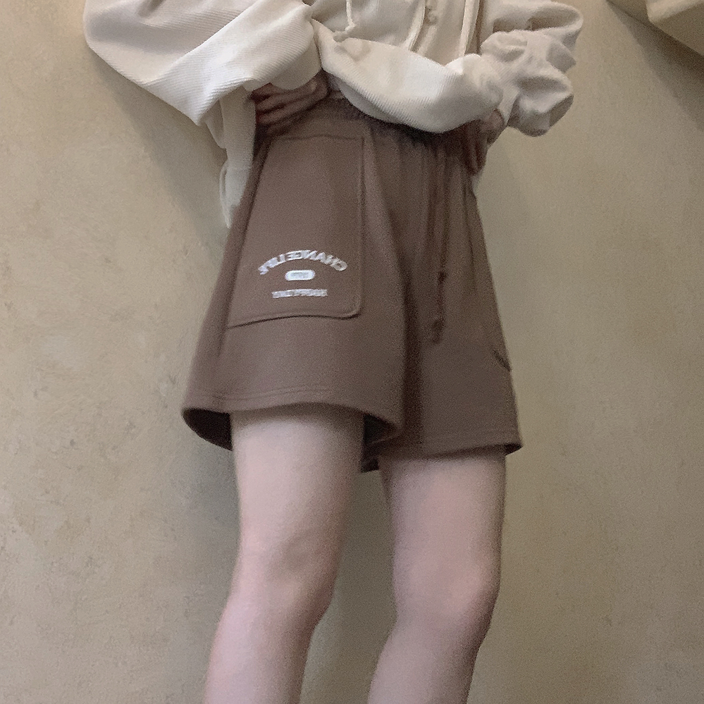 Принт в стиле ретро, вересково-серый и коричневый, эластичная талия, спортивная девушка, широкие махровые шорты W