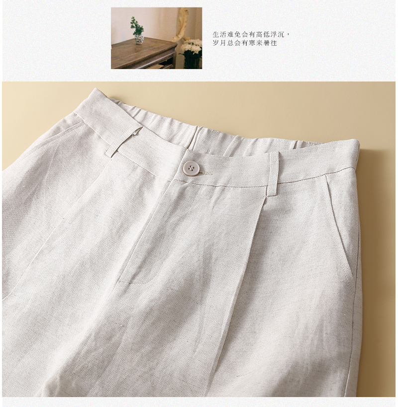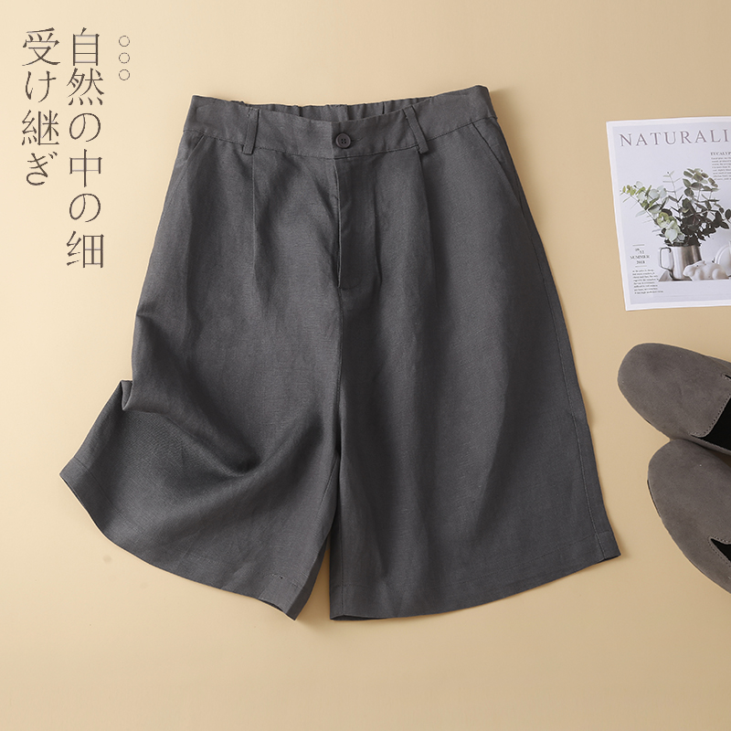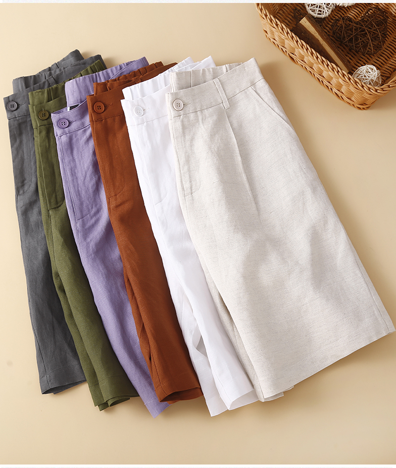 Японские шорты, приталенные тонкие штаны, из хлопка и льна, свободный крой, эластичная талия