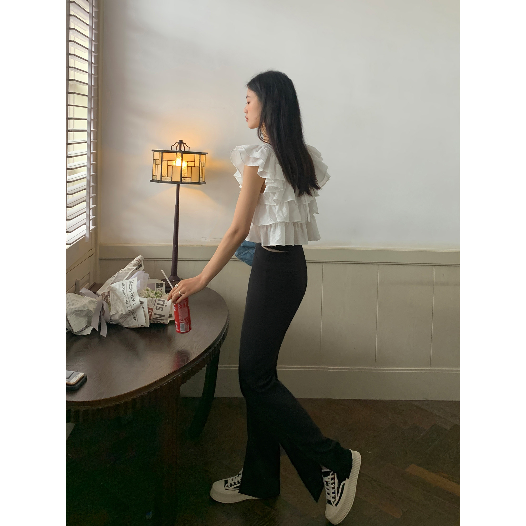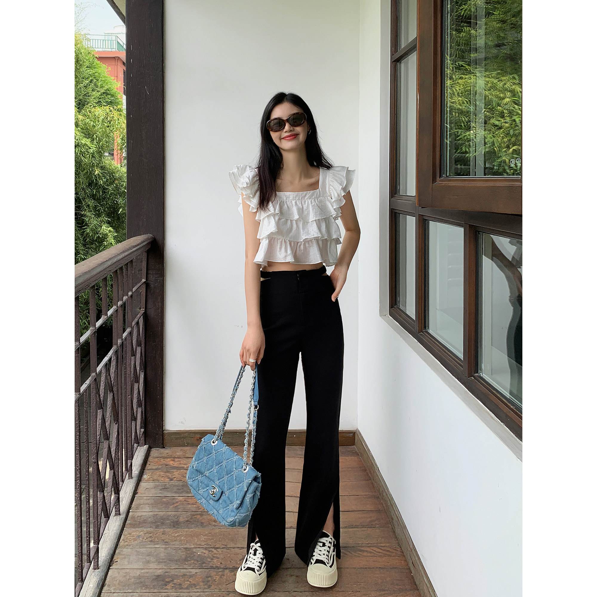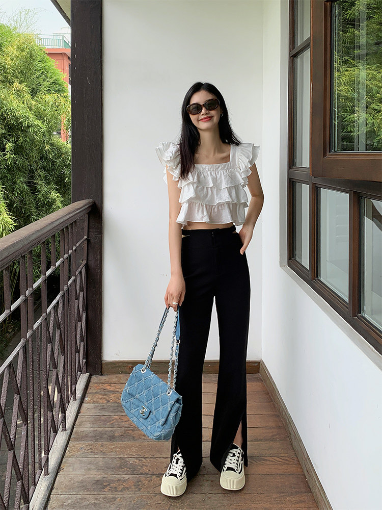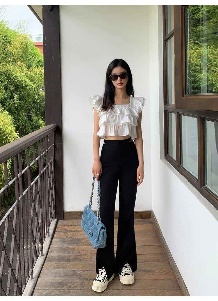 Черные дизайнерские штаны, коллекция 2022, тренд сезона, высокая талия, свободный прямой крой