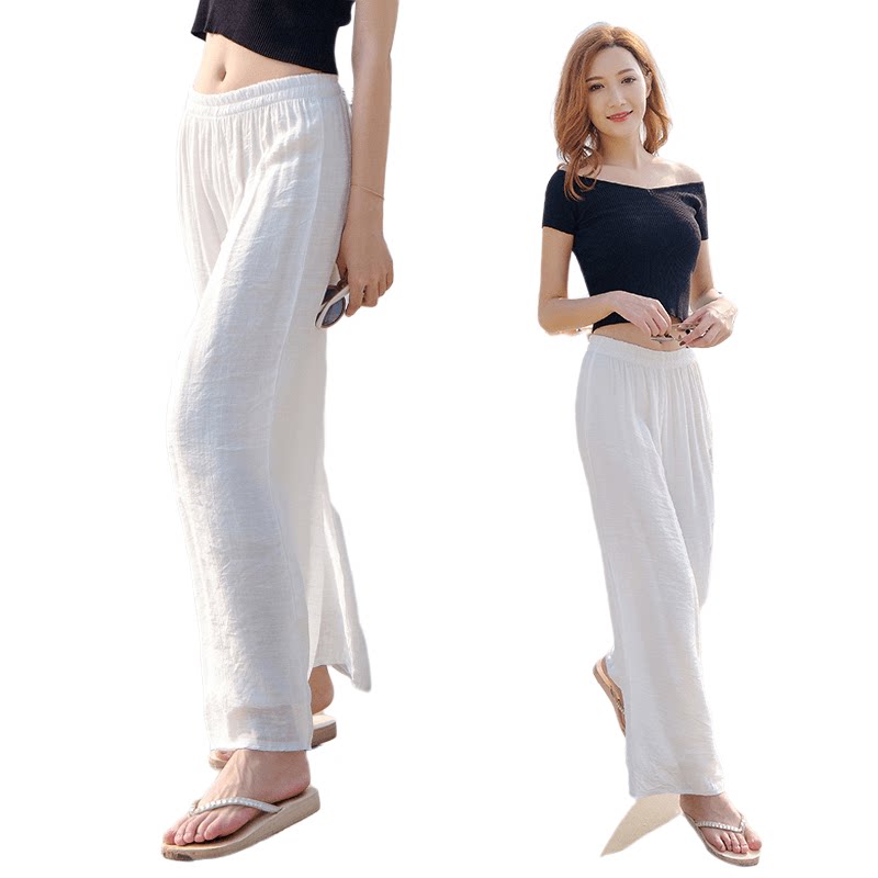 Белые тонкие штаны, оверсайз, из хлопка и льна, высокая талия, свободный прямой крой