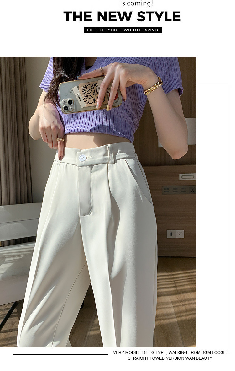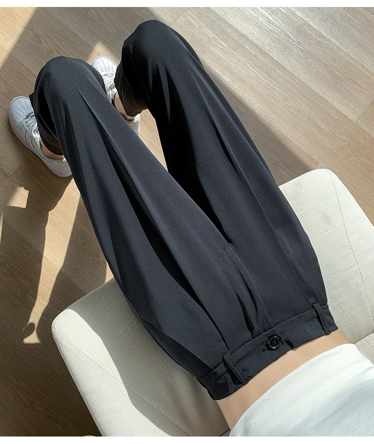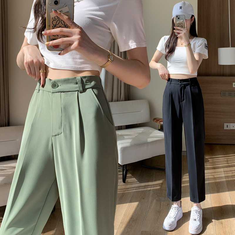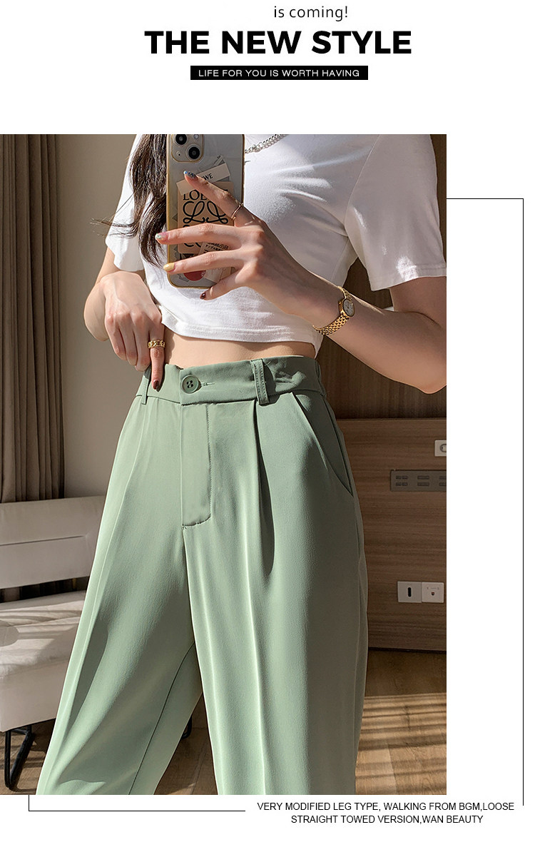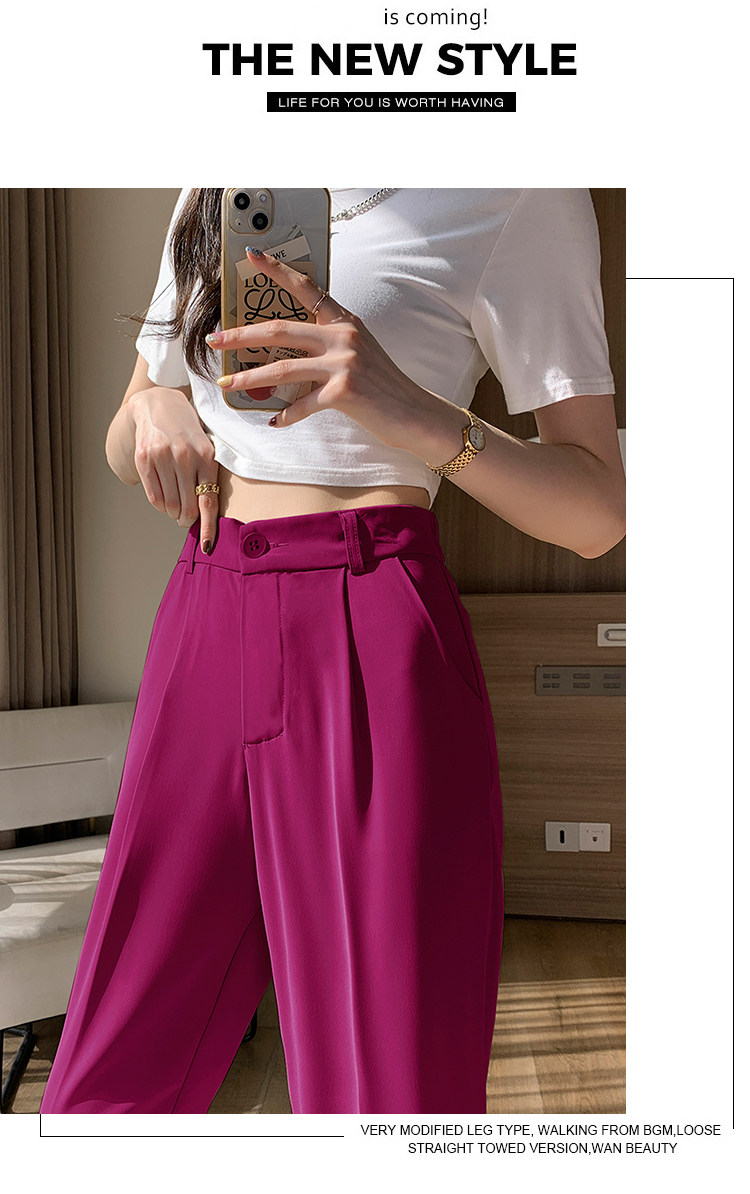 Костюм, приталенные шелковые штаны, изысканный стиль, высокая талия, свободный прямой крой, подходит для подростков