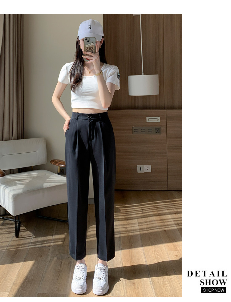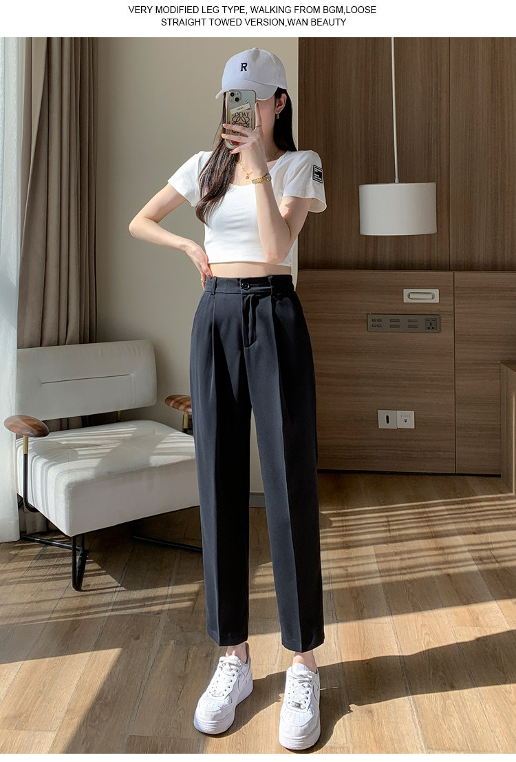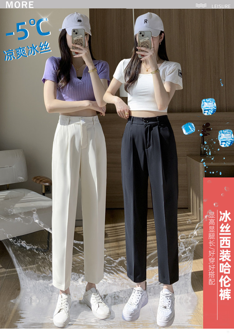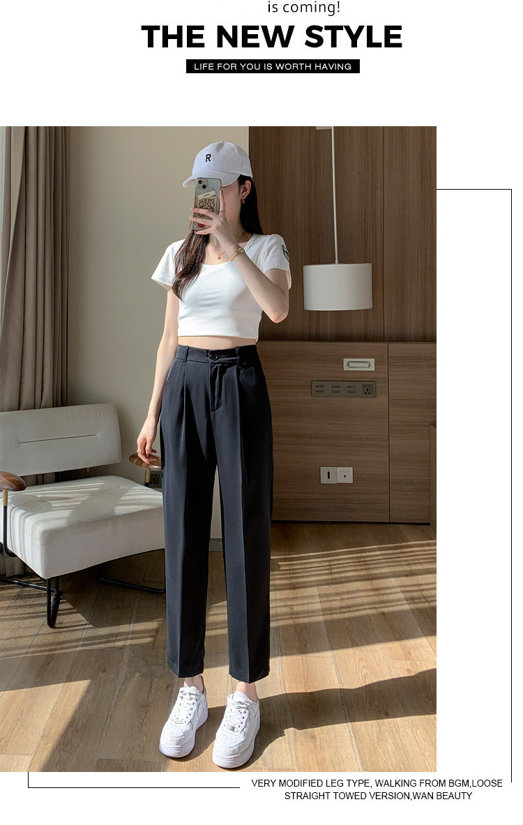 Костюм, приталенные шелковые штаны, изысканный стиль, высокая талия, свободный прямой крой, подходит для подростков