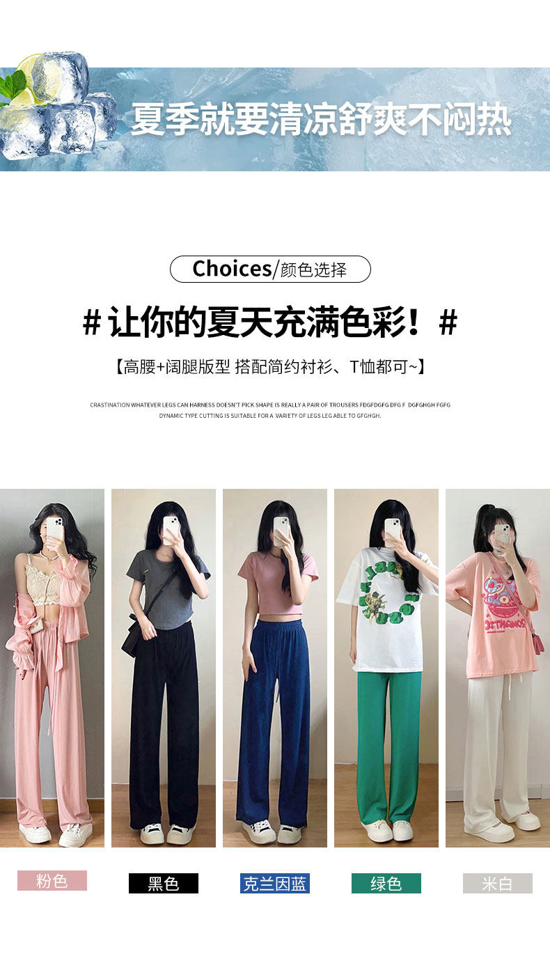 Шелковые тонкие штаны, 2024 года, высокая талия, свободный прямой крой, стройный силуэт, по фигуре, подходит для подростков