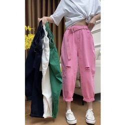 Шелковые тонкие штаны для отдыха, из хлопка и льна, высокая талия, свободный крой