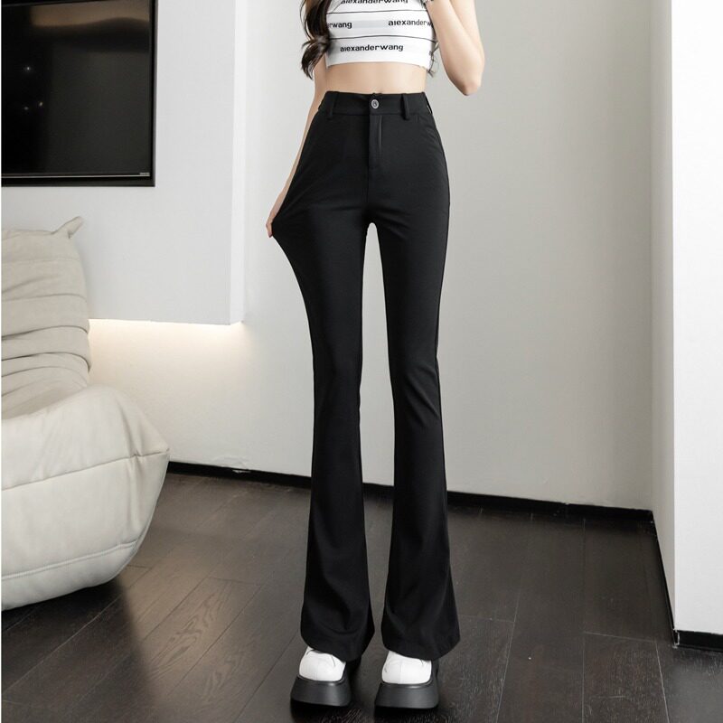 Шелковые штаны-клёш, тонкие приталенные штаны, эластичный комбинезон, костюм, высокая талия, в обтяжку