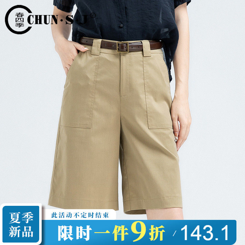 Шелковые летние тонкие штаны, хаки шорты для отдыха, высокая талия, коллекция 2023