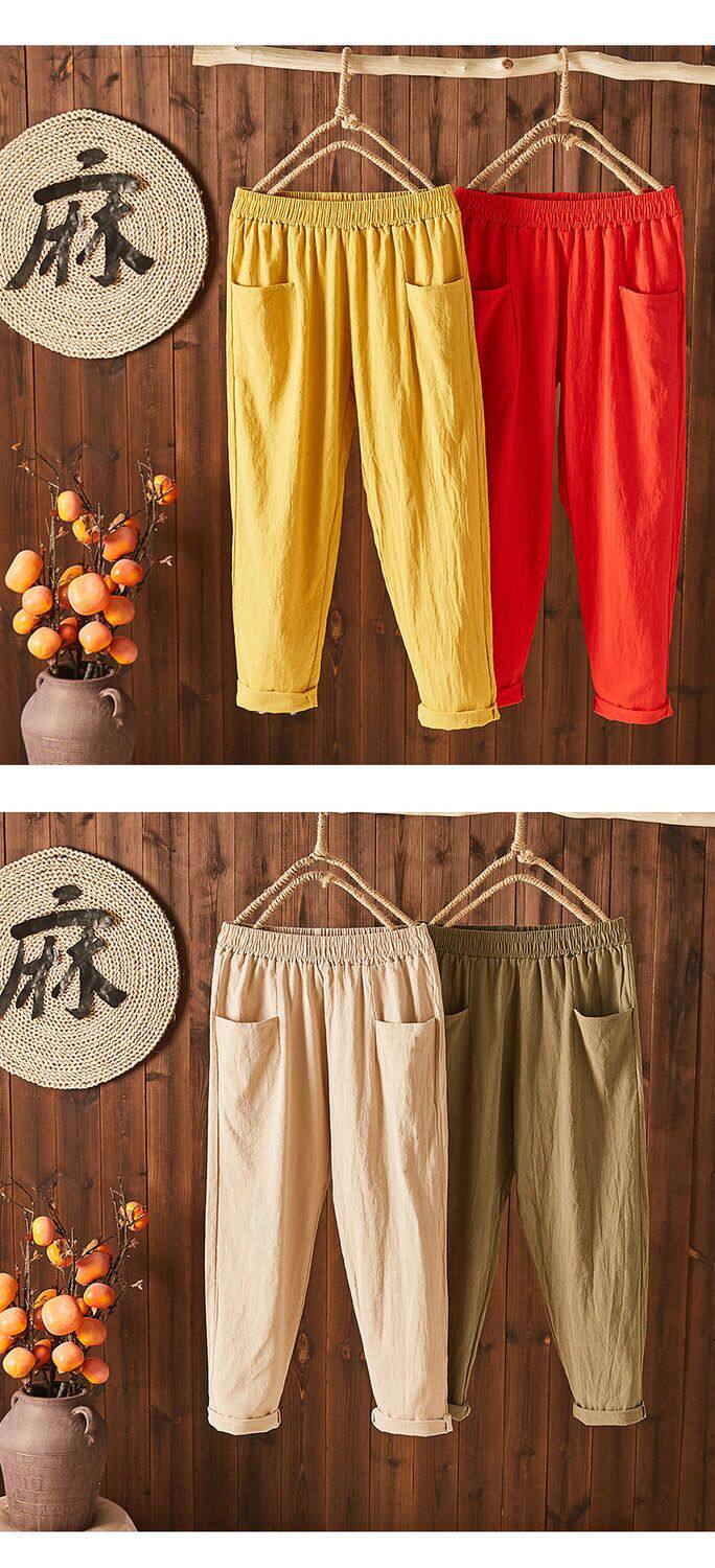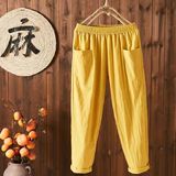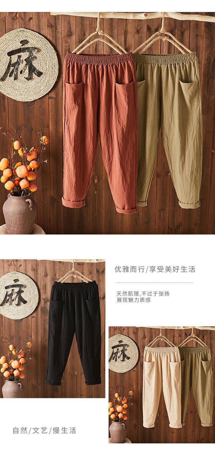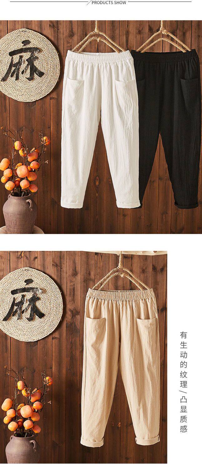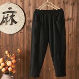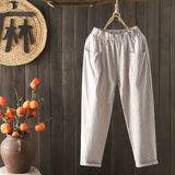 Летние тонкие штаны, из хлопка и льна, в корейском стиле, высокая талия, свободный прямой крой