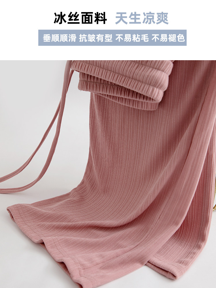 Шелковые тонкие спортивные розовые штаны для отдыха, подходят для подростков, свободный прямой крой, высокая талия