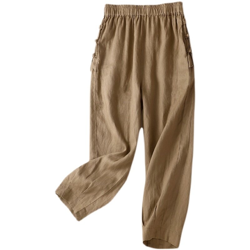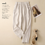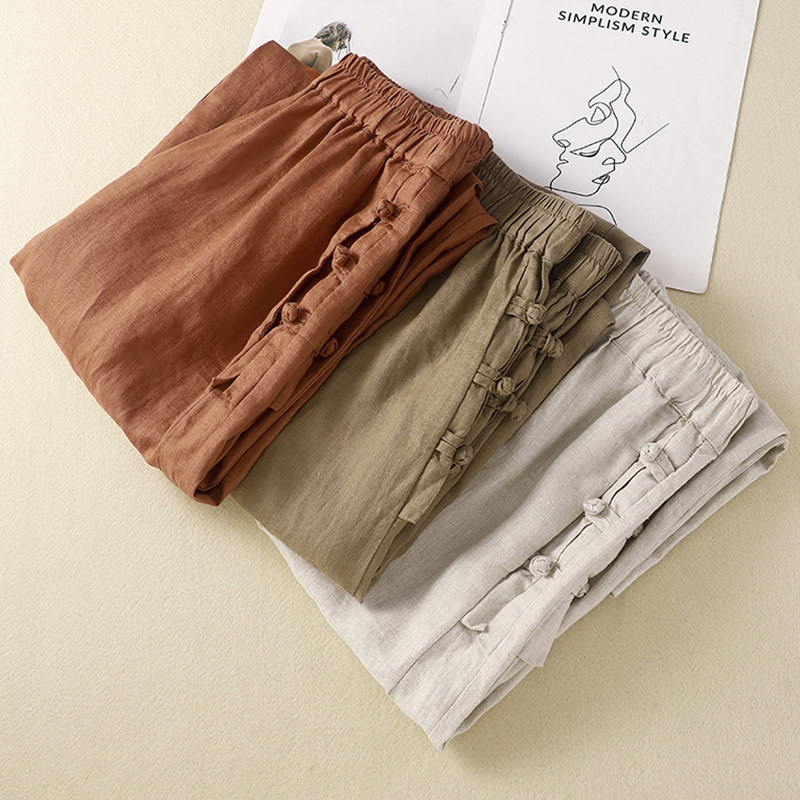 Летние ретро штаны для отдыха, из хлопка и льна