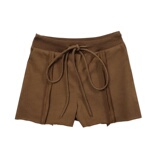 Летние оригинальные ретро дизайнерские коричневые штаны, шорты, в американском стиле, тренд сезона, на шнурках