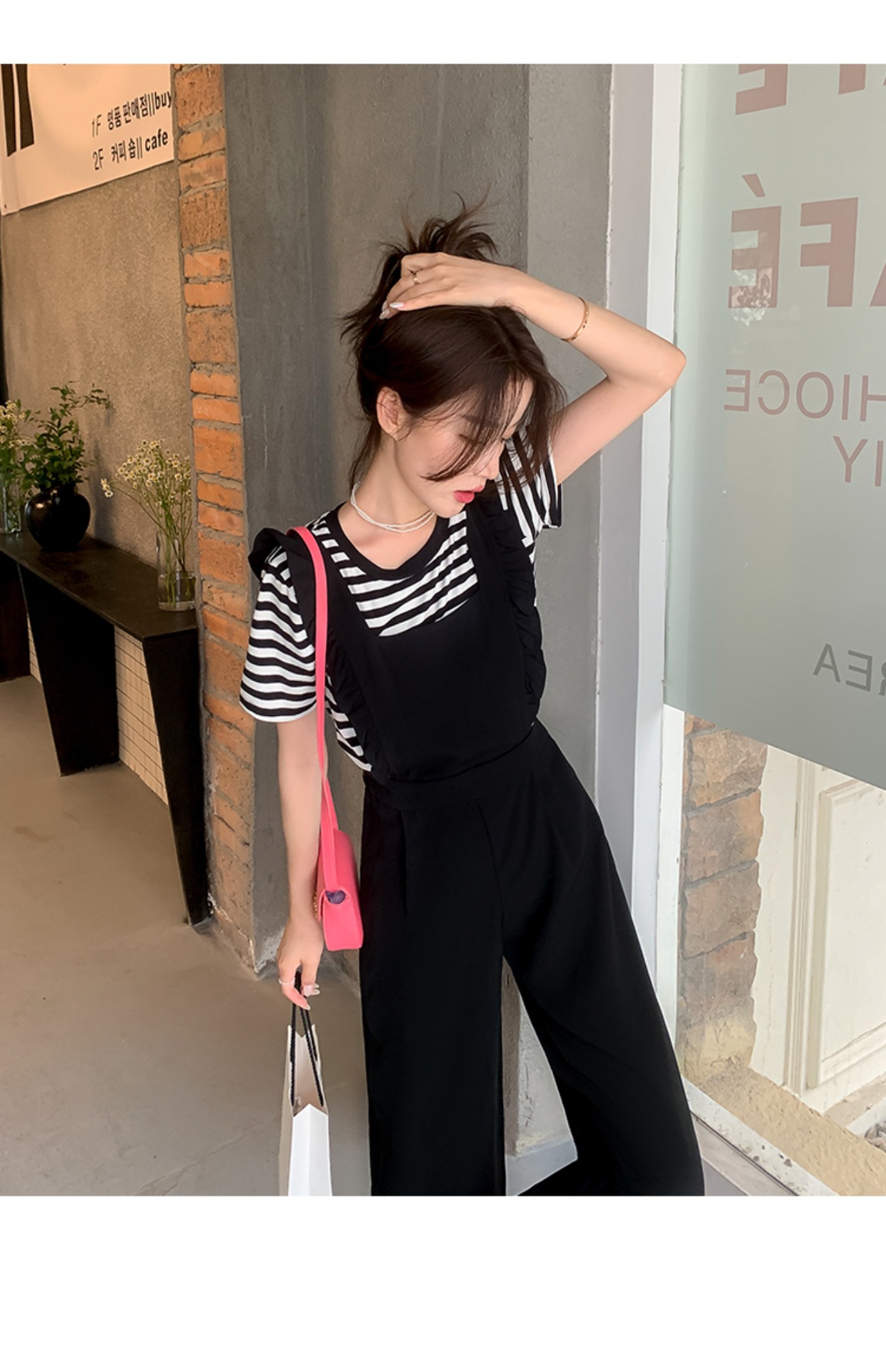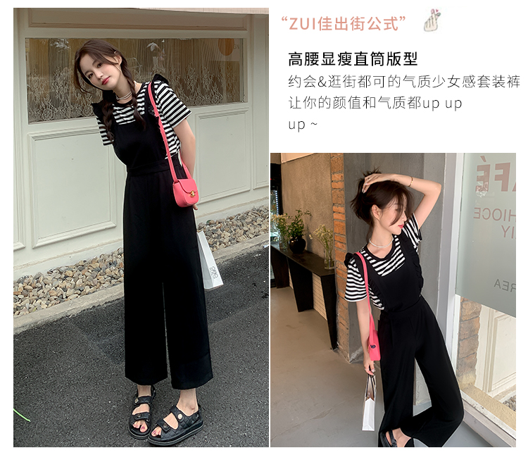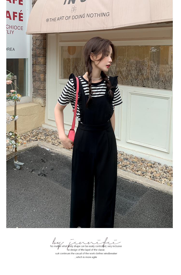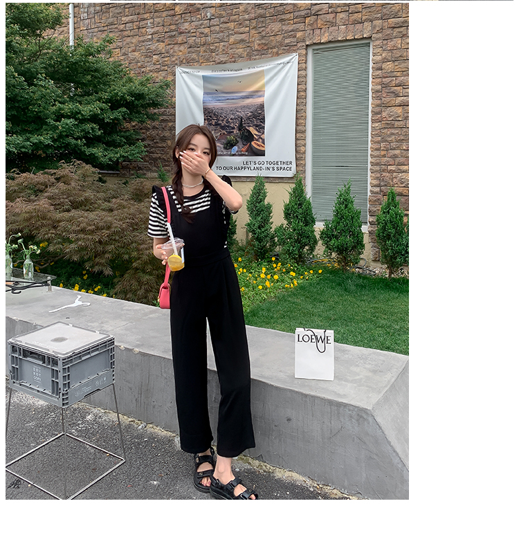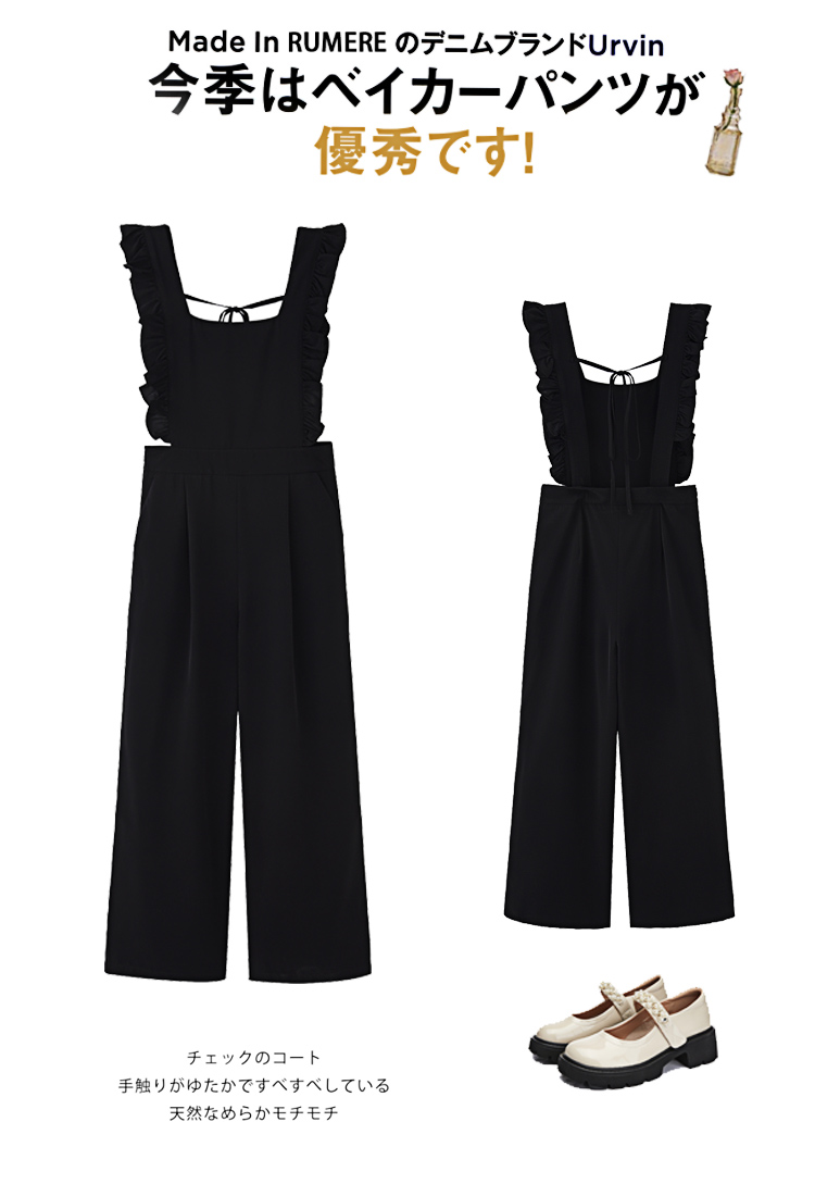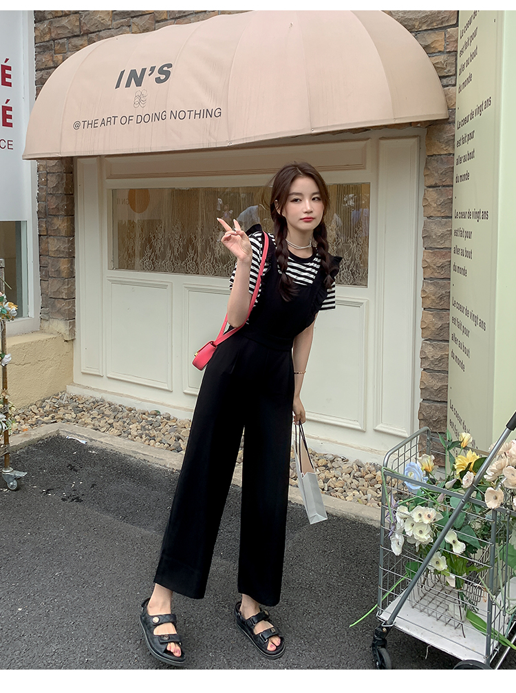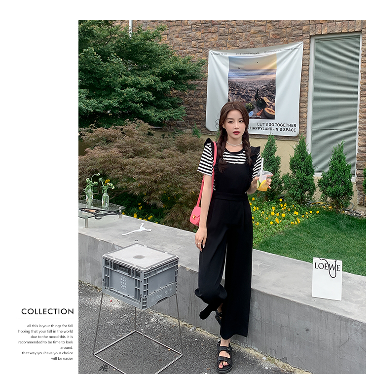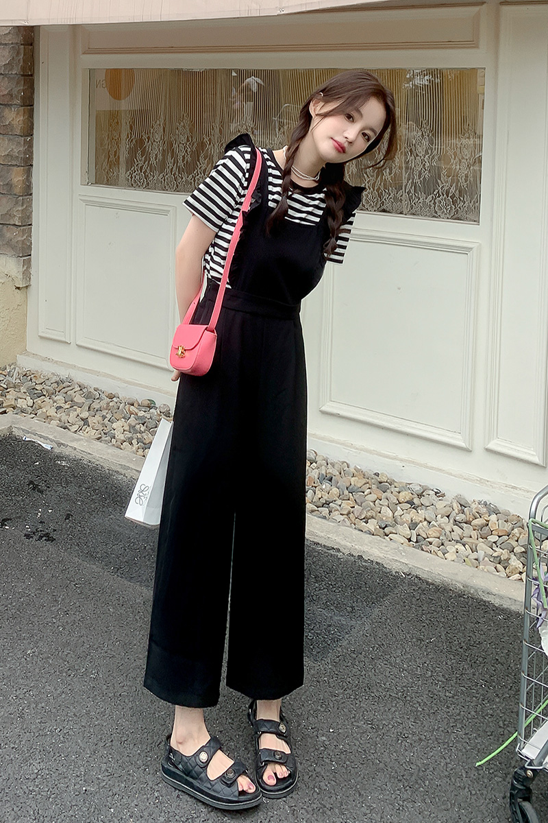 Комбинезон, штаны, летний осенний черный комплект, высокая талия, по фигуре