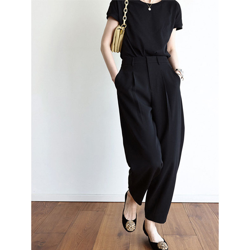 Черный цветной приталенный костюм для отдыха, шелковые тонкие штаны, свободный прямой крой