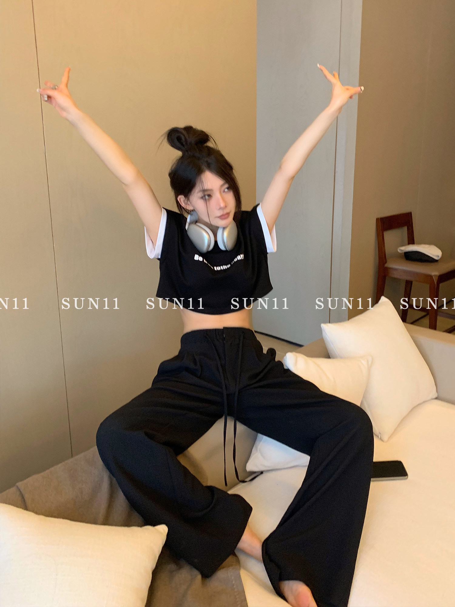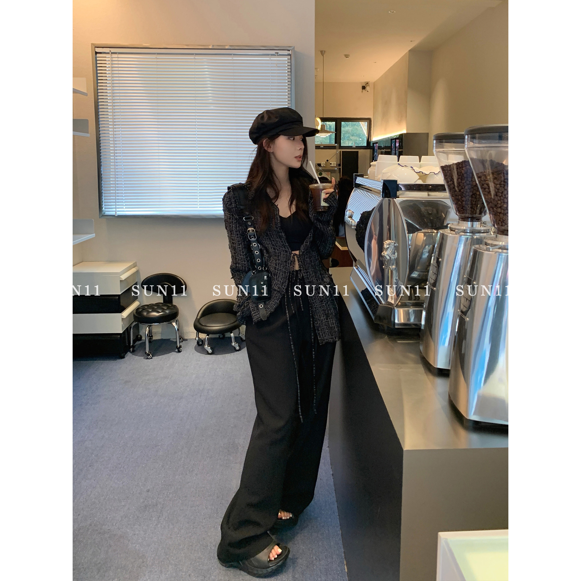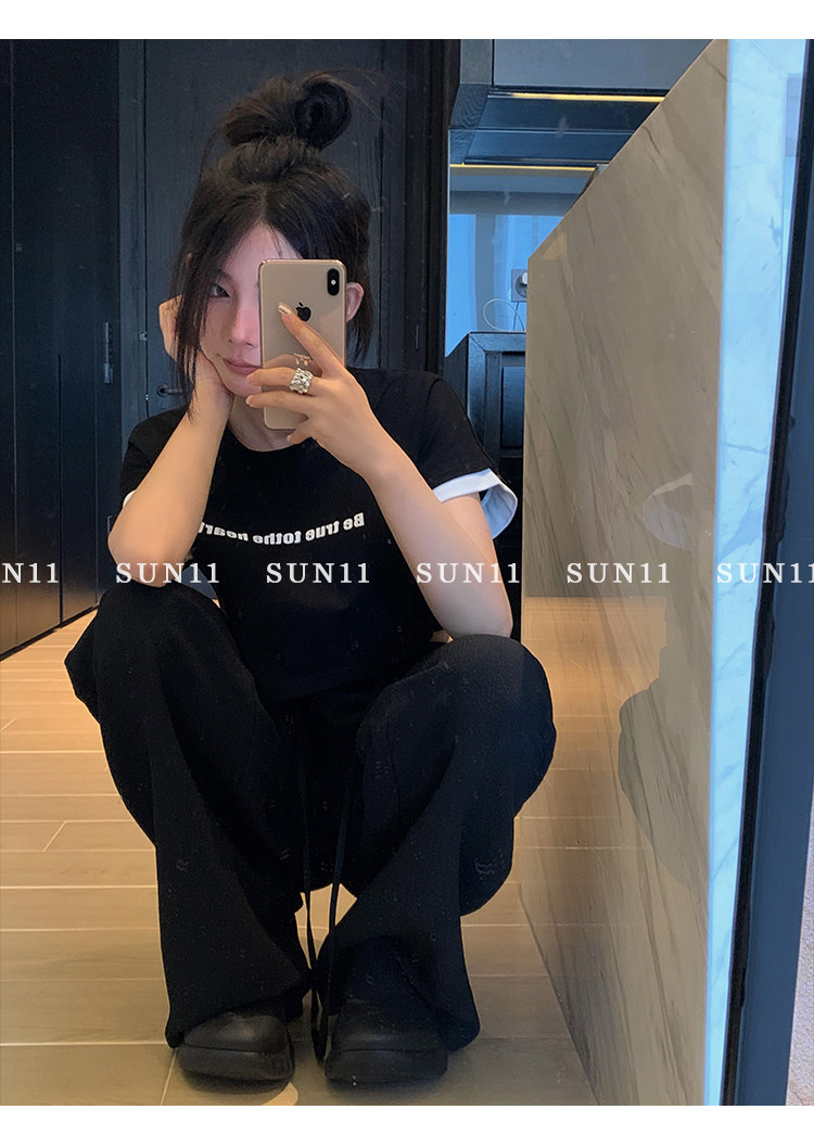 Черные осенние штаны, приталенные леггинсы, на шнурках, высокая талия, свободный прямой крой