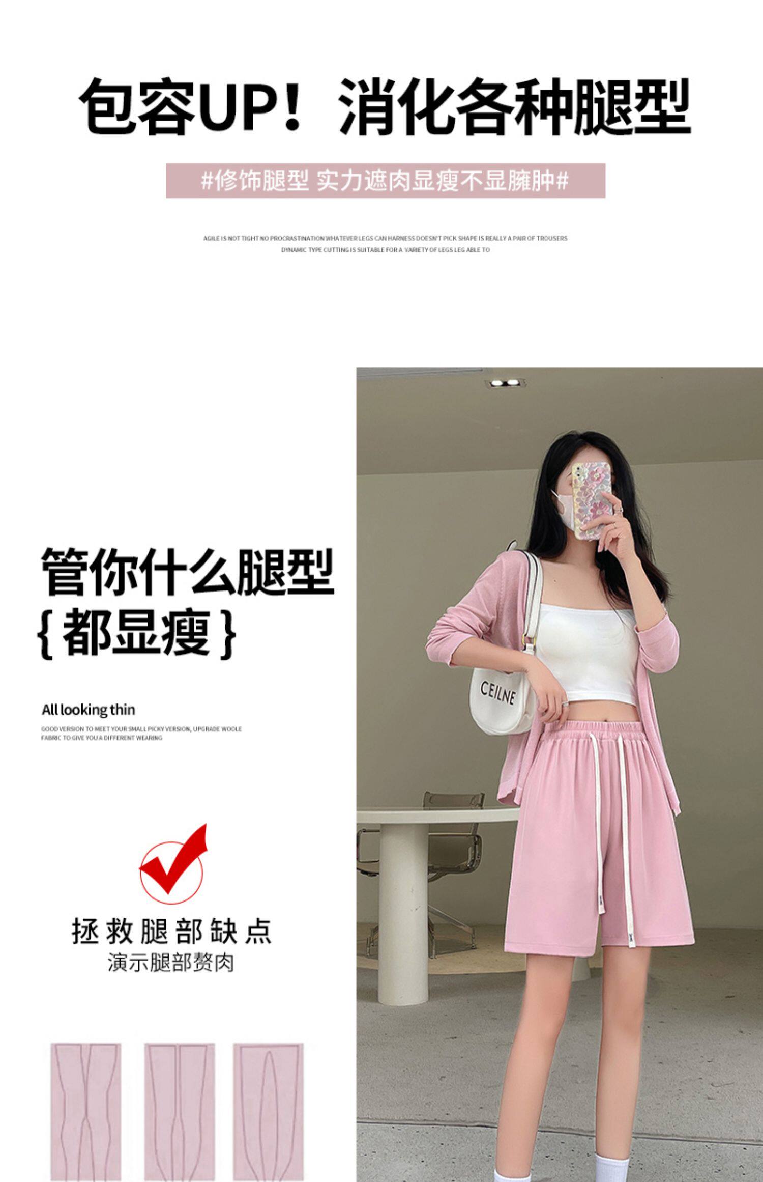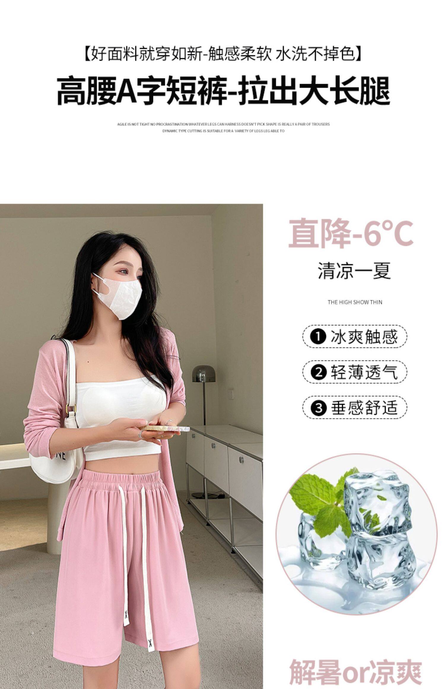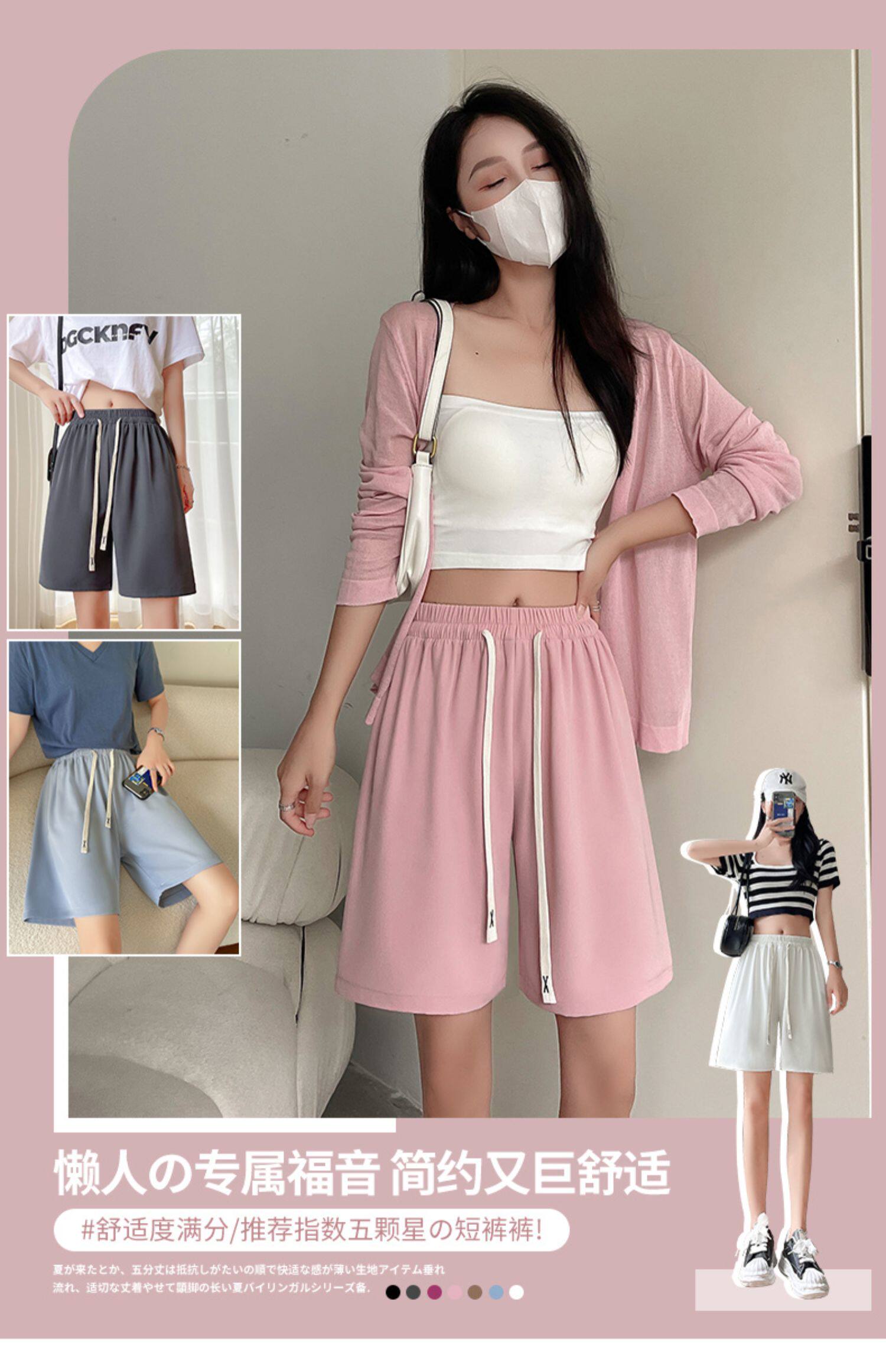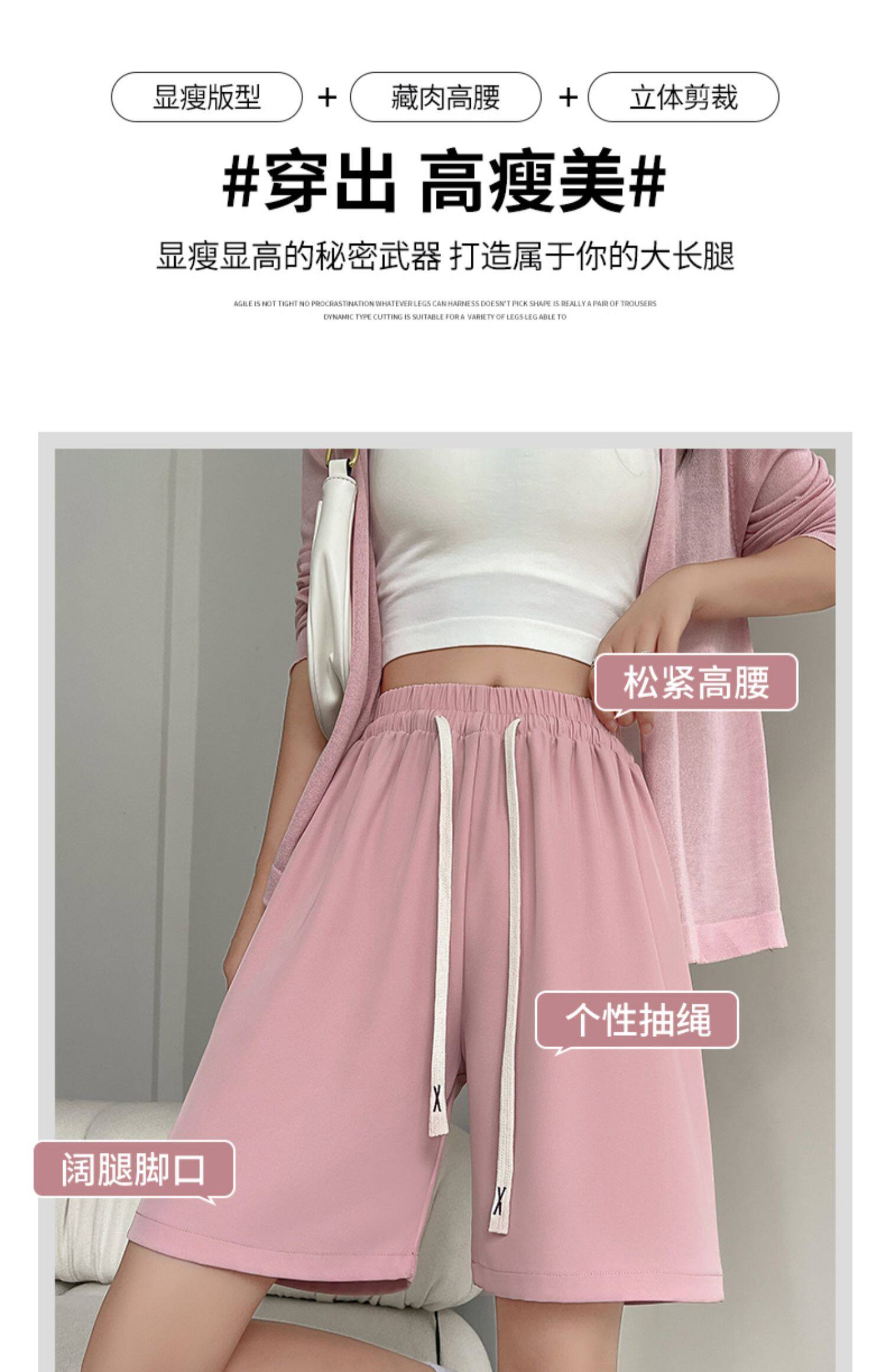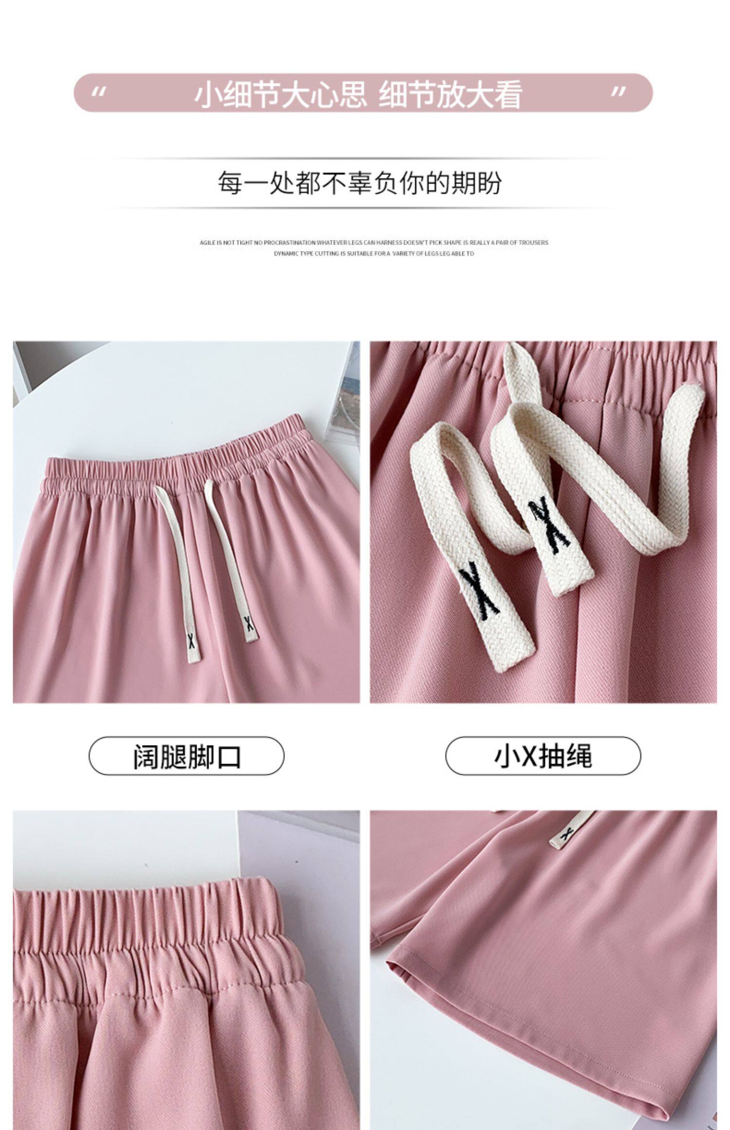 Розовые шелковые спортивные шорты, тонкие штаны, костюм, высокая талия, свободный крой, подходит для подростков