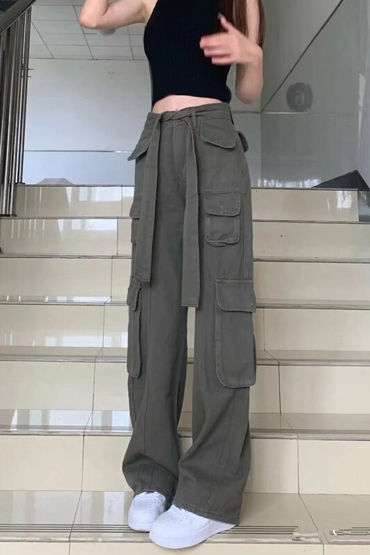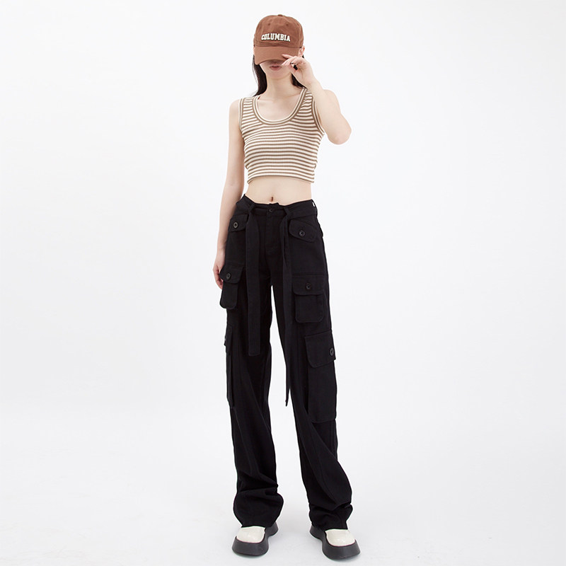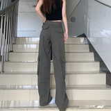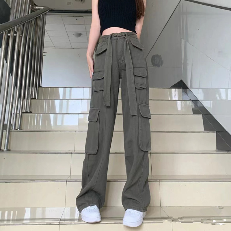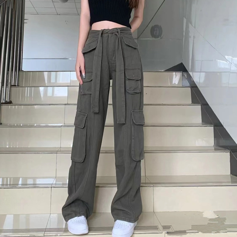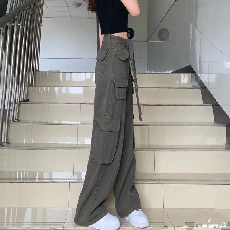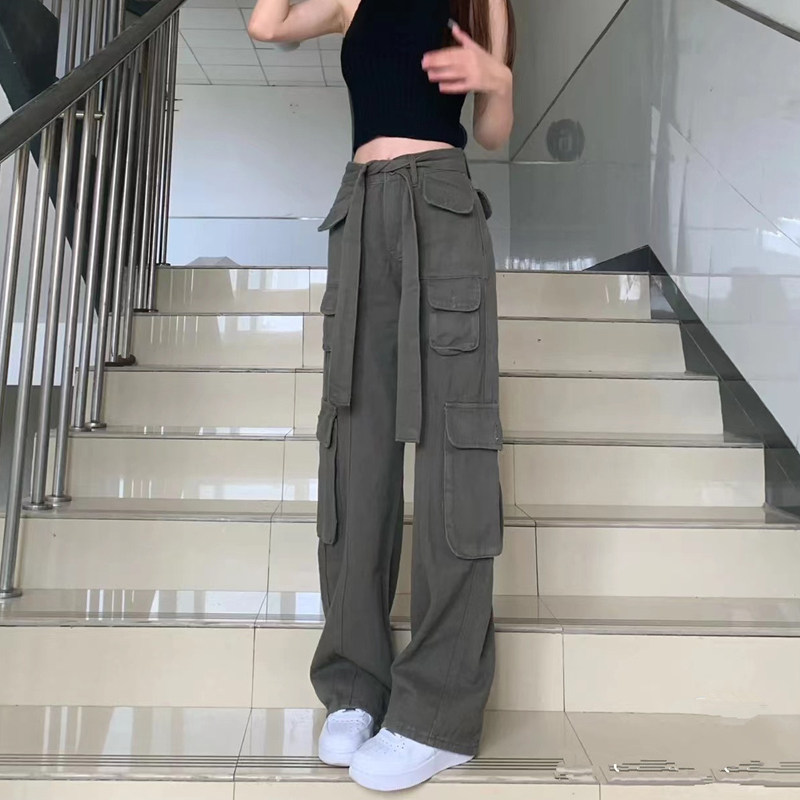 Длинные приталенные штаны в стиле хип-хоп, на шнурках, высокая талия, свободный прямой крой