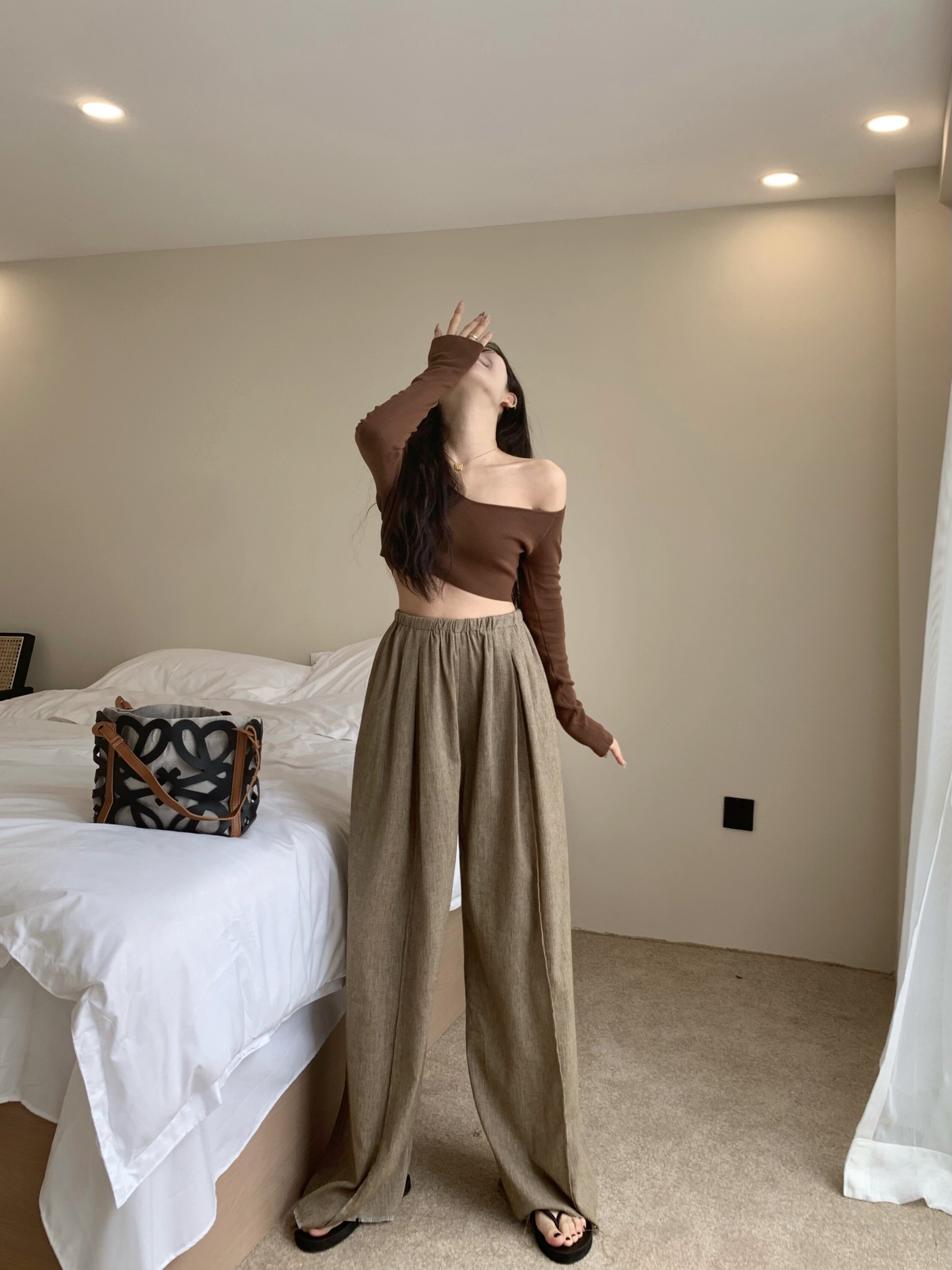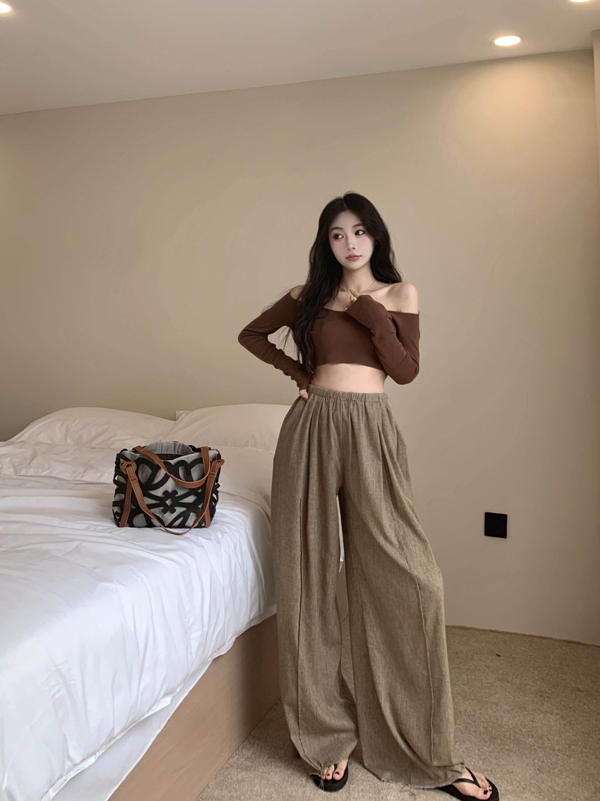 Летние штаны, подходят для подростков, высокая талия, свободный прямой крой, из хлопка и льна