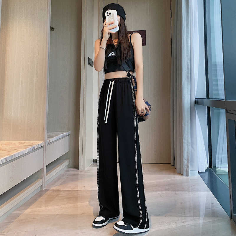 Черные сексуальные штаны, летний тонкий костюм, свободный прямой крой, осенние, по фигуре, подходит для подростков