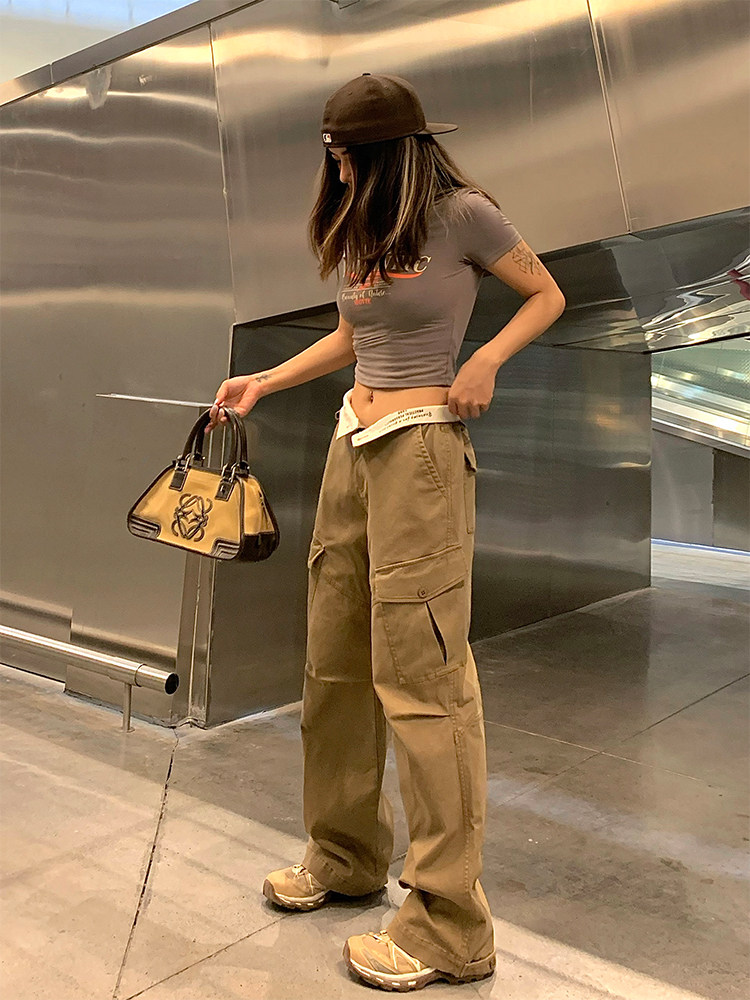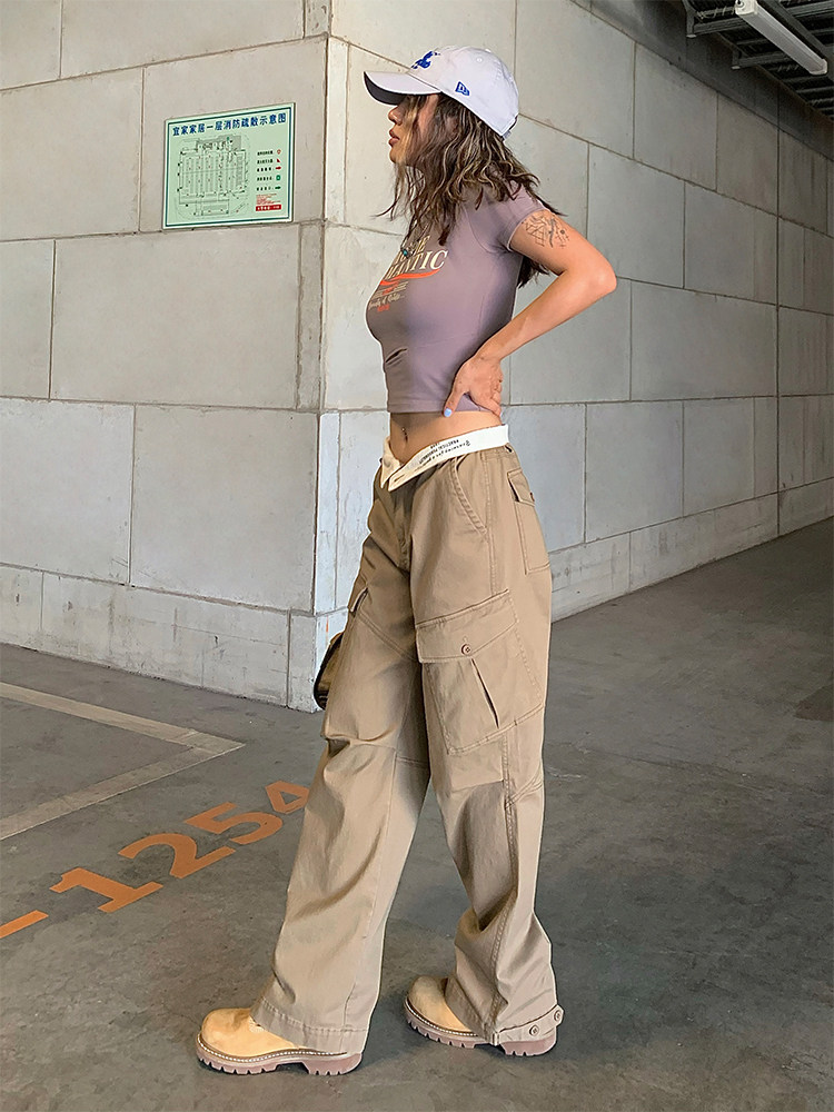 Осенние леггинсы, ретро хаки штаны для отдыха, свободный прямой крой, высокая талия