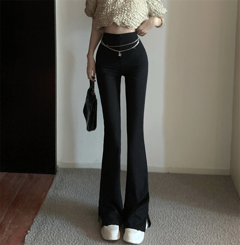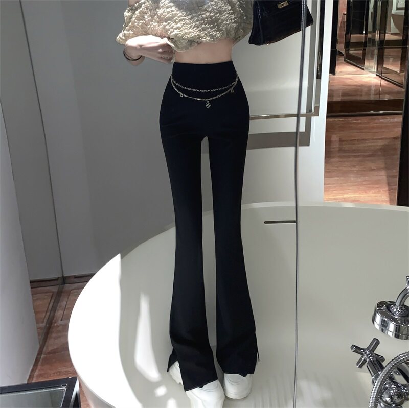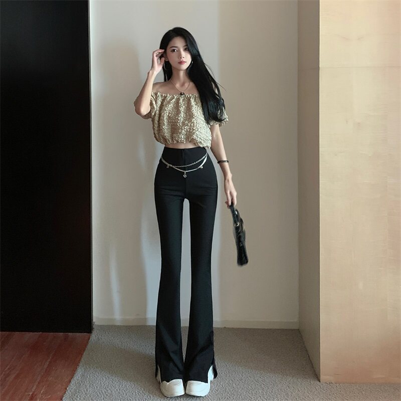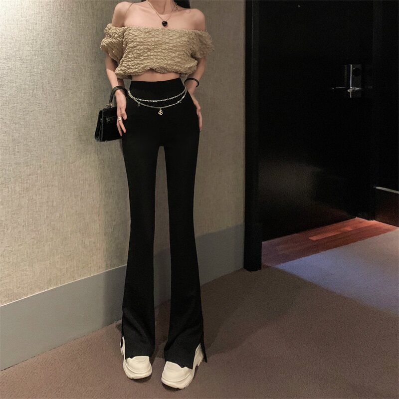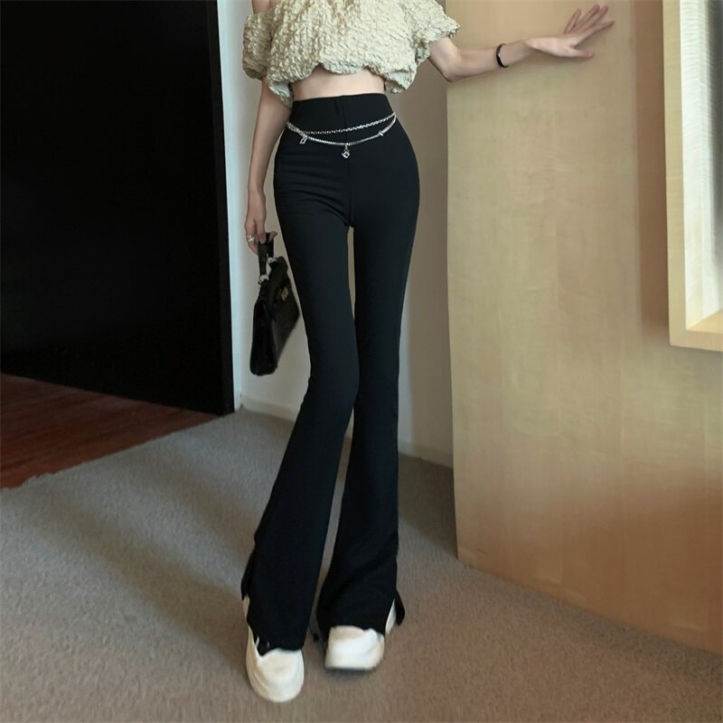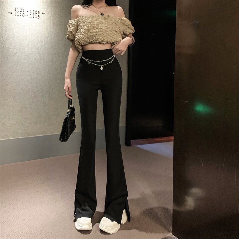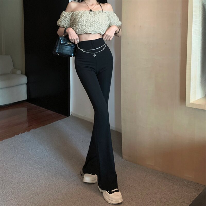 Черные штаны для отдыха, осенняя цепь, мегафон, свободный прямой крой, высокая талия