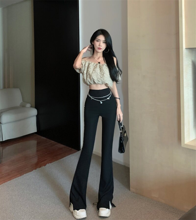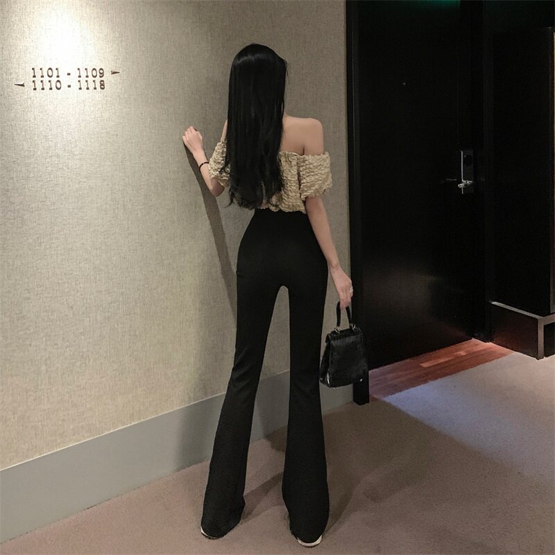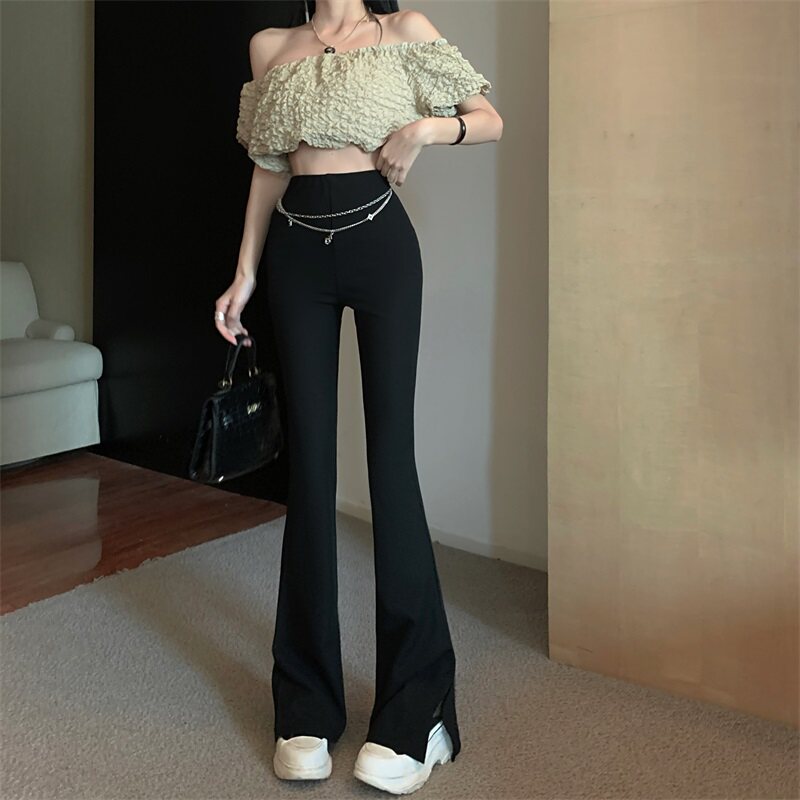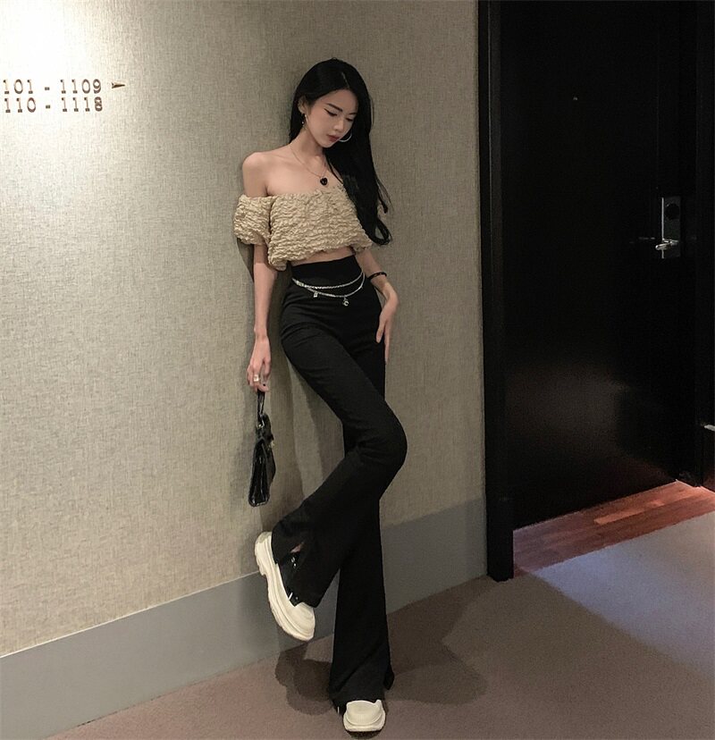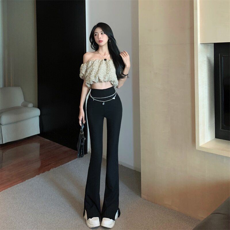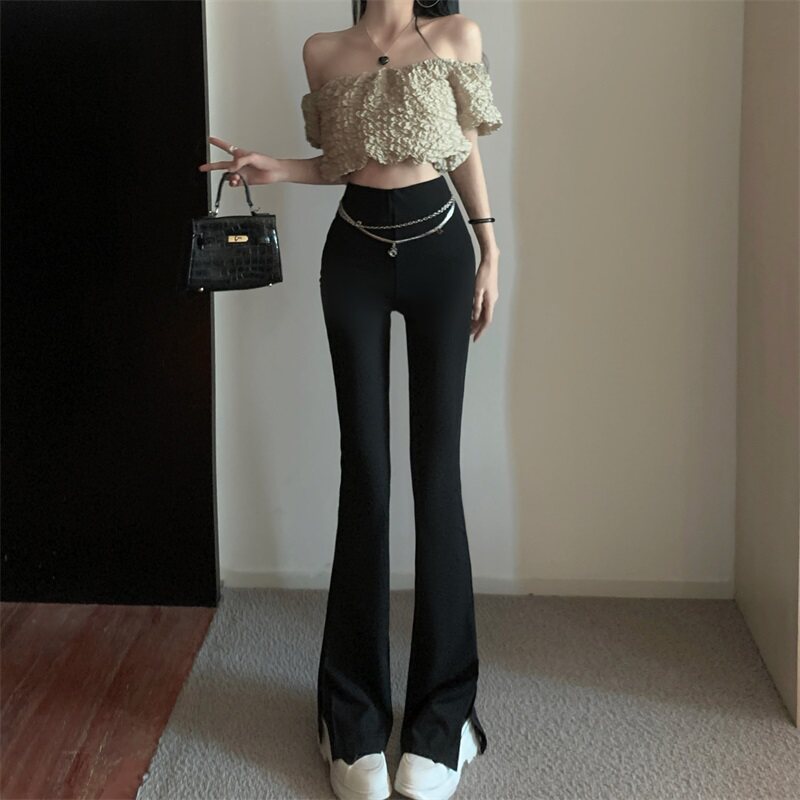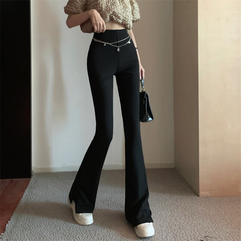 Черные штаны для отдыха, осенняя цепь, мегафон, свободный прямой крой, высокая талия