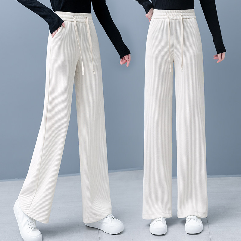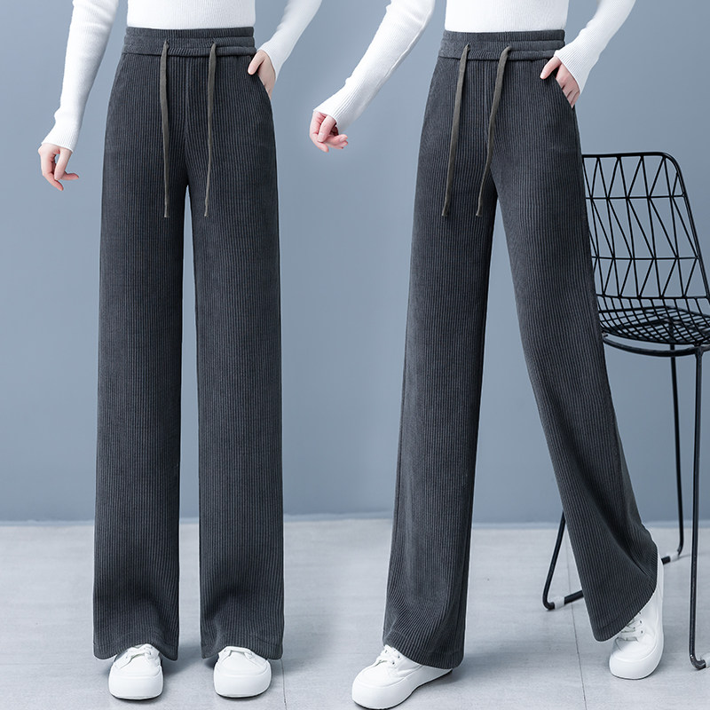 Вельветовые осенние демисезонные штаны, флисовые повседневные брюки для отдыха, свободный прямой крой