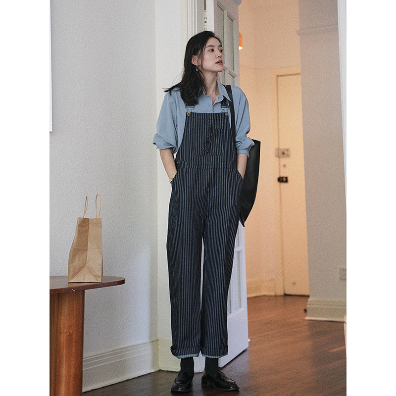 Джинсовый комбинезон, штаны, осенний, свободный прямой крой