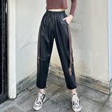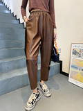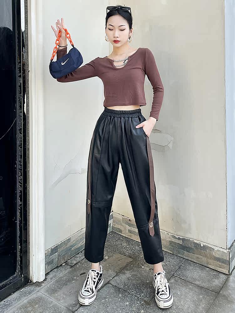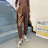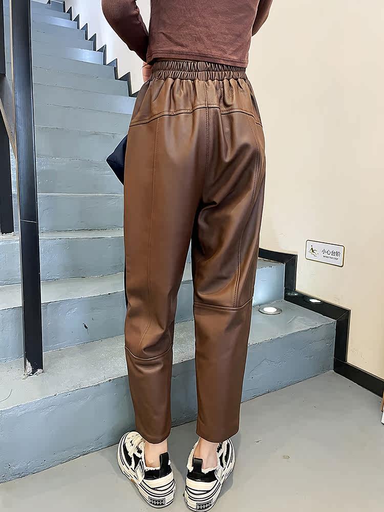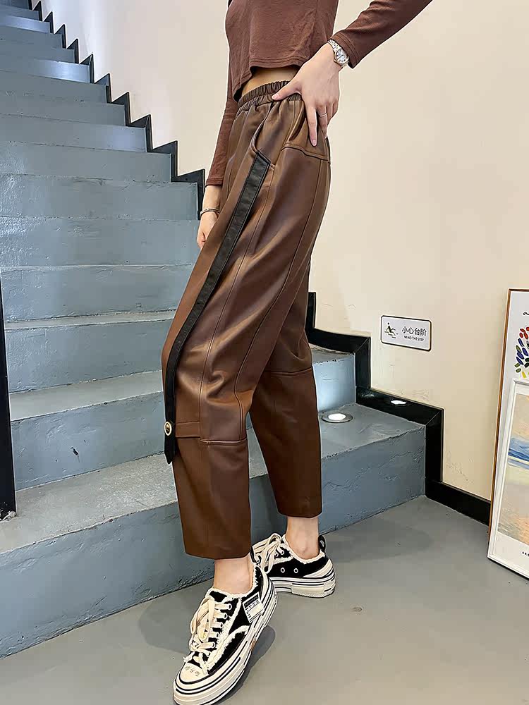 Модные цветные демисезонные штаны, большой размер, из натуральной кожи, высокая талия