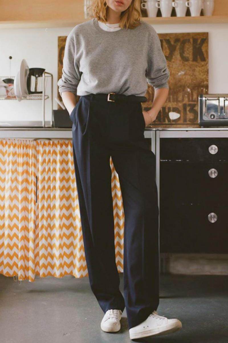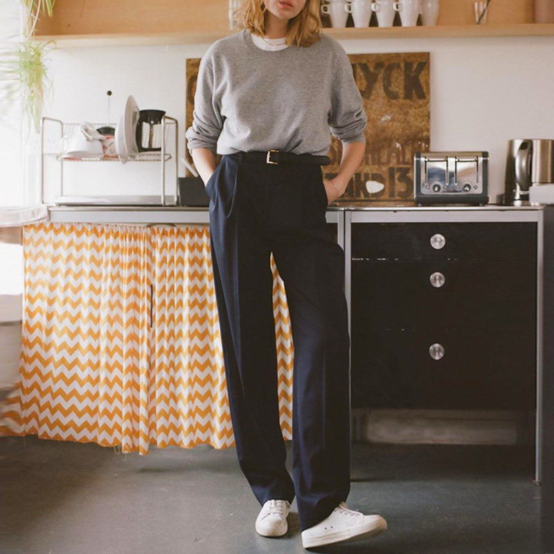 Костюм, осенние штаны для отдыха, высокая талия, свободный прямой крой