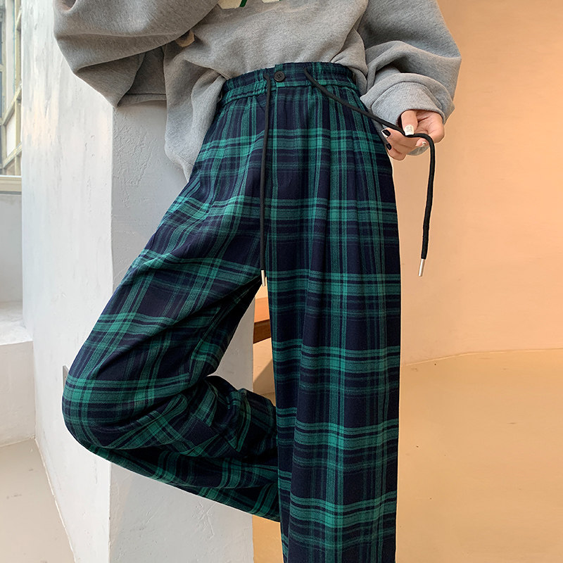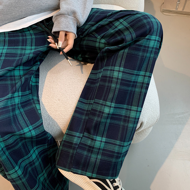 Зеленые шахматы, весенние ретро штаны для отдыха, свободный прямой крой