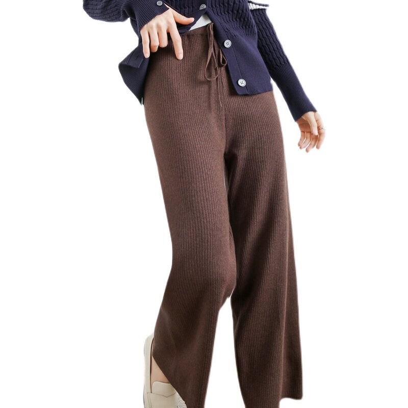 Кашемировые демисезонные трикотажные эластичные штаны для отдыха, высокая талия, свободный прямой крой