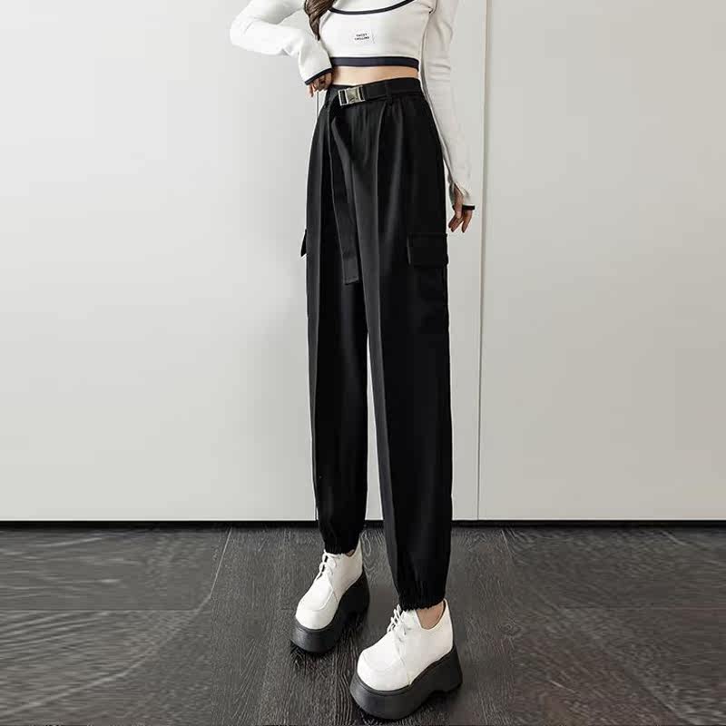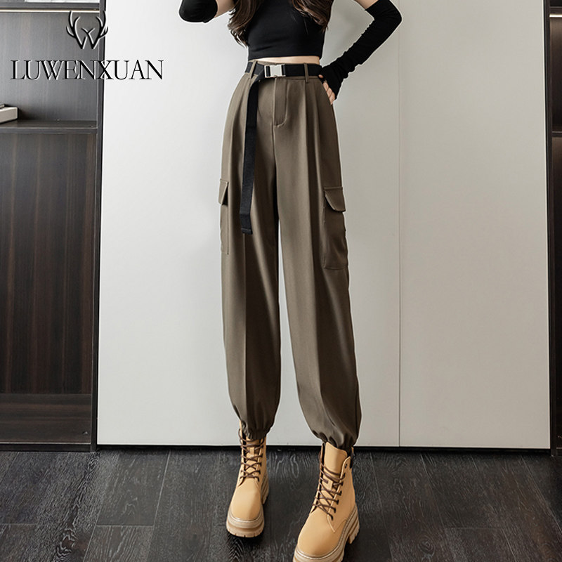 Небольшие дизайнерские осенние штаны для отдыха, леггинсы, приталенный длинный костюм, тренд сезона, свободный прямой крой, высокая талия