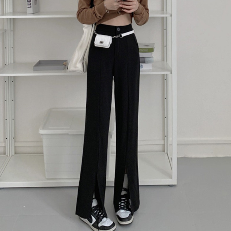 Осенний черный костюм, приталенные штаны, в корейском стиле, высокая талия