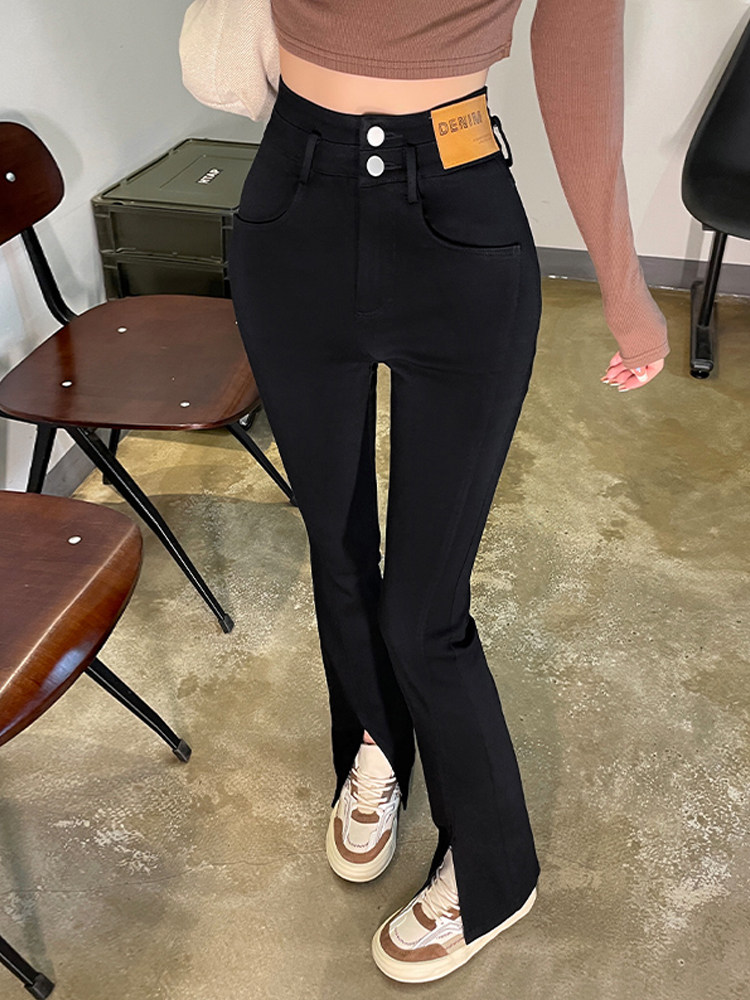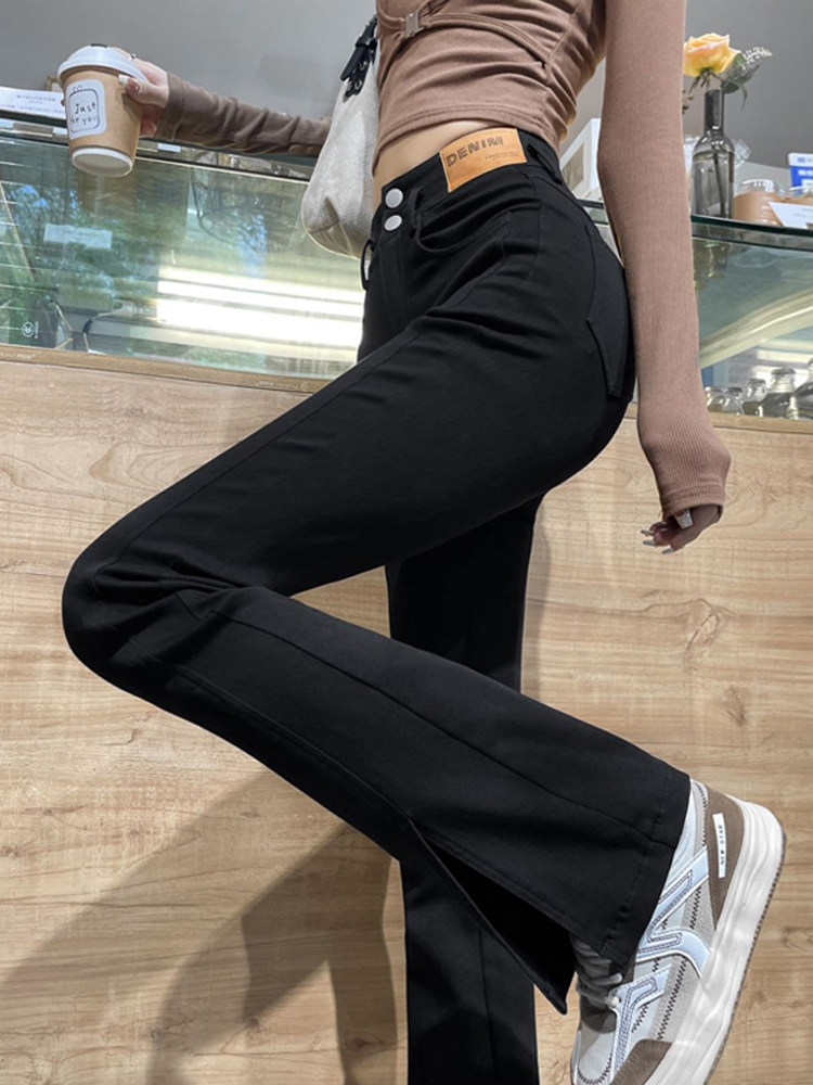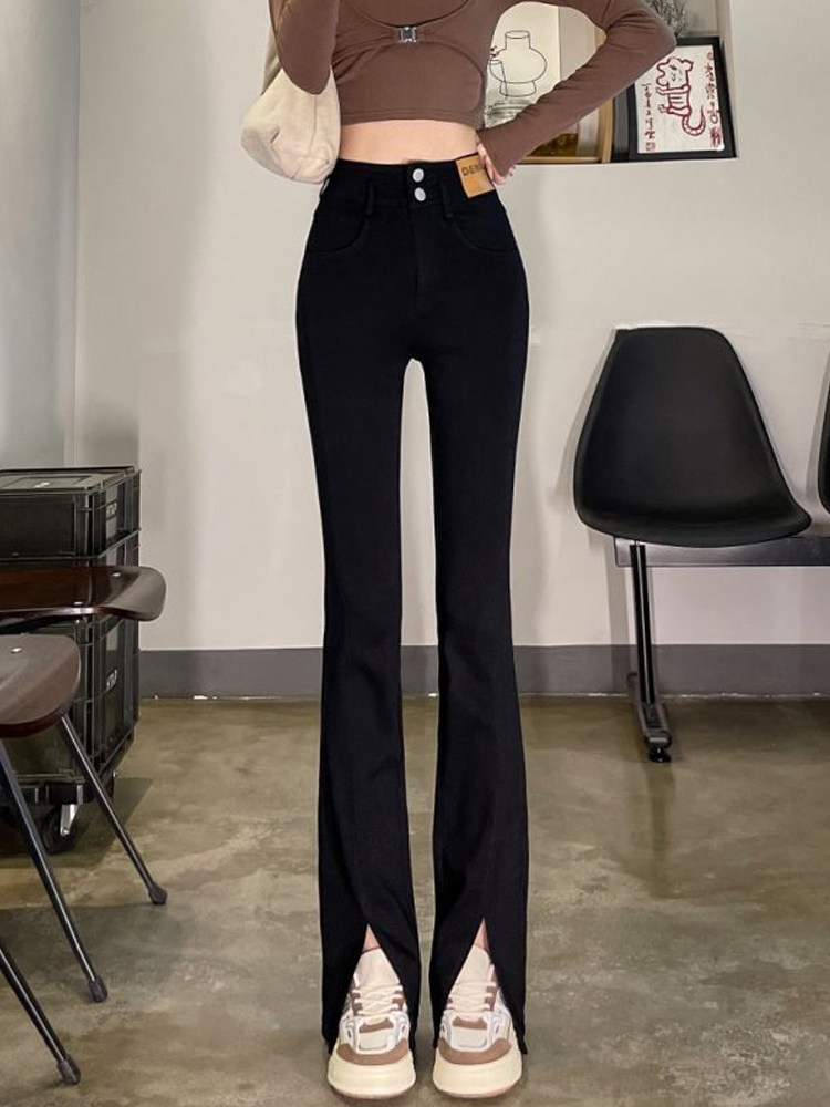 Черные осенние штаны-клёш, приталенные штаны, новая коллекция
