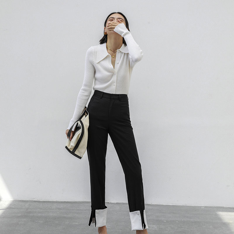 因由 Дизайнерские штаны для отдыха, свободный прямой крой, тренд сезона, высокая талия, осенние