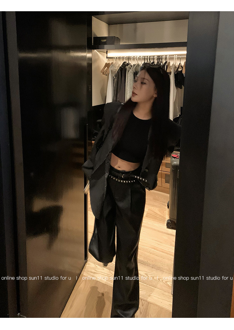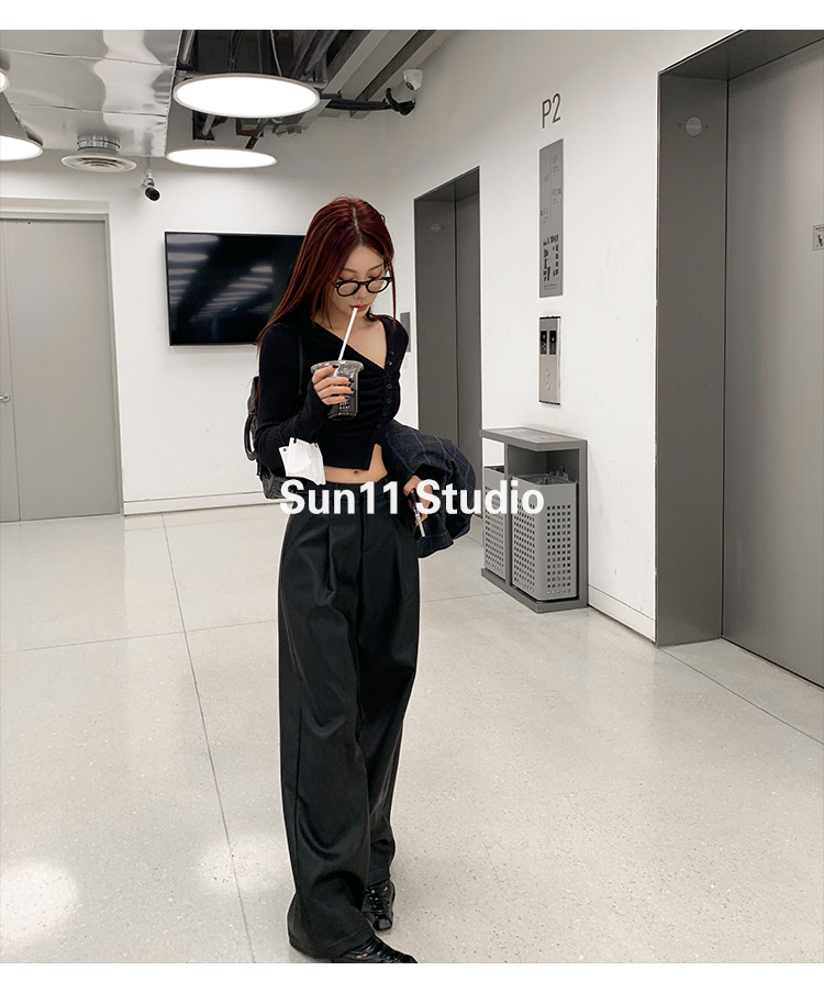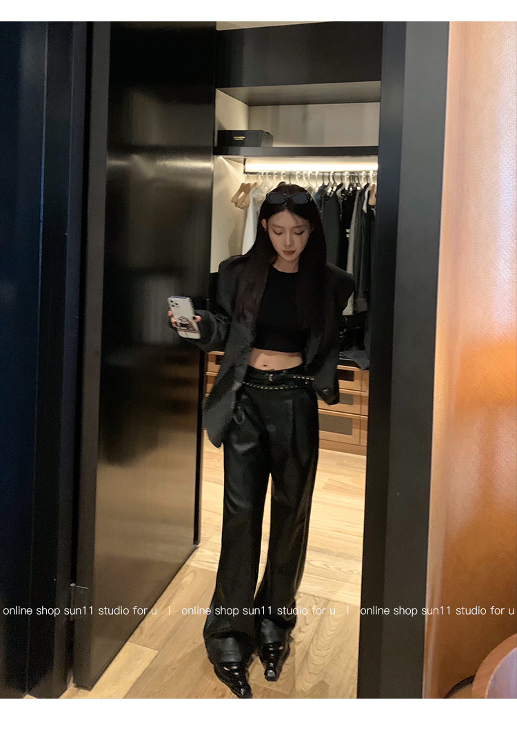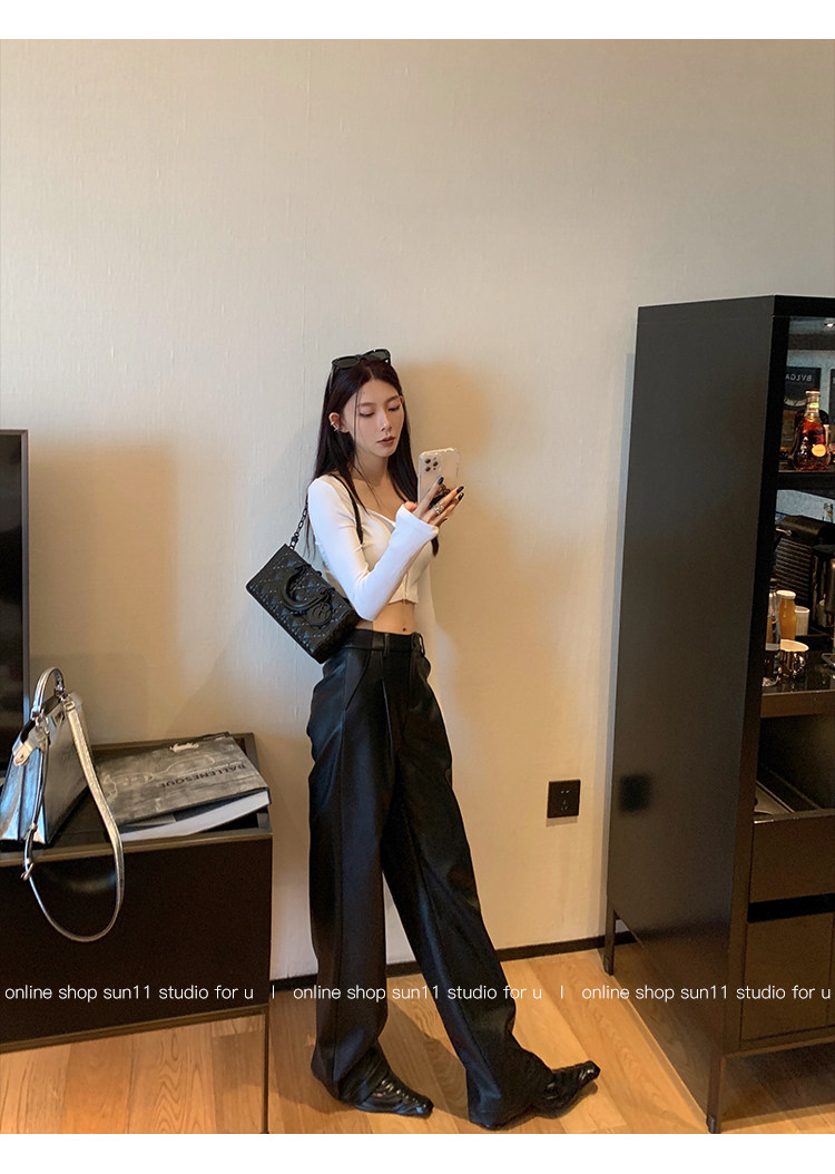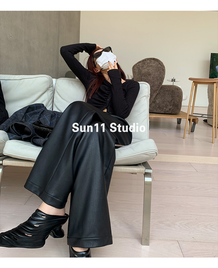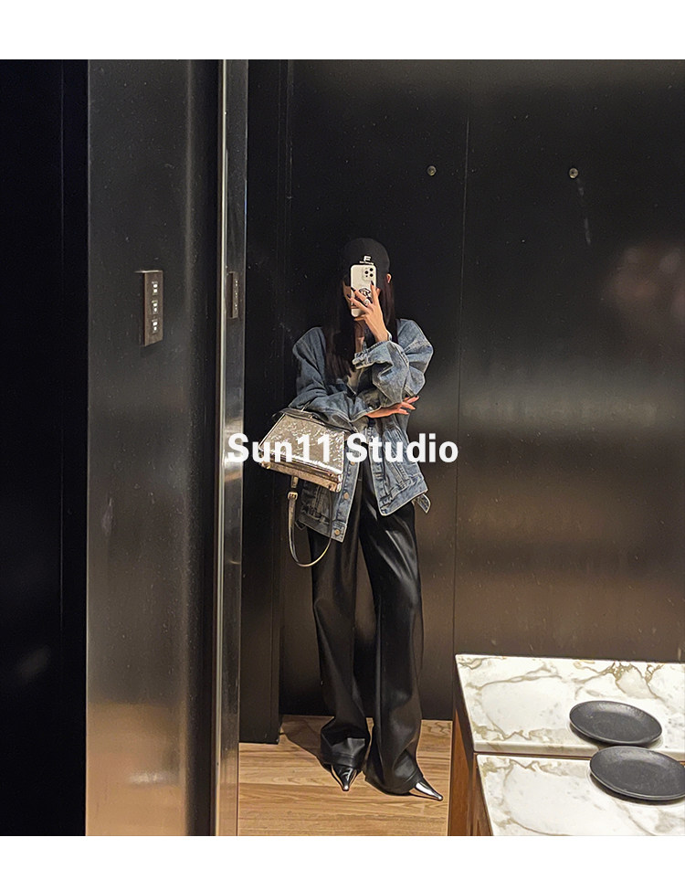 Черные весенние летние полиуретановые штаны, (в наличии на складе), свободный прямой крой