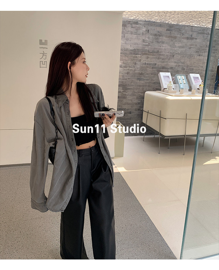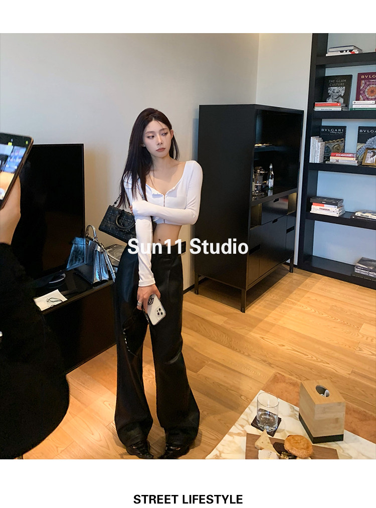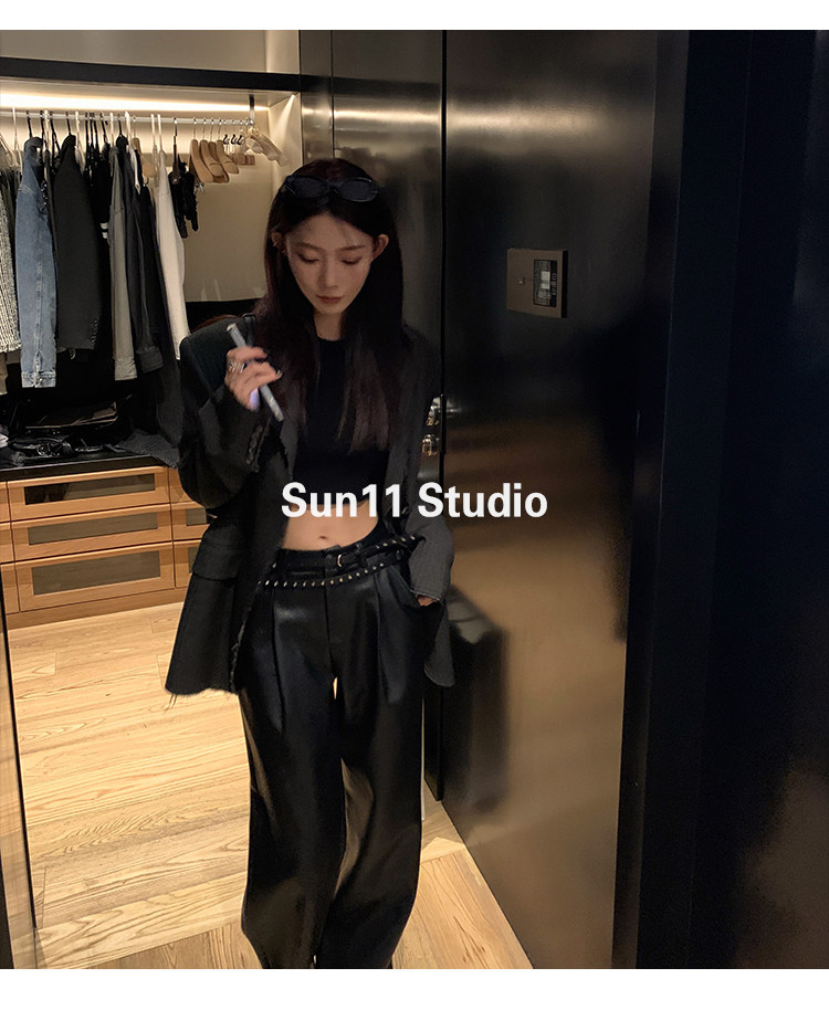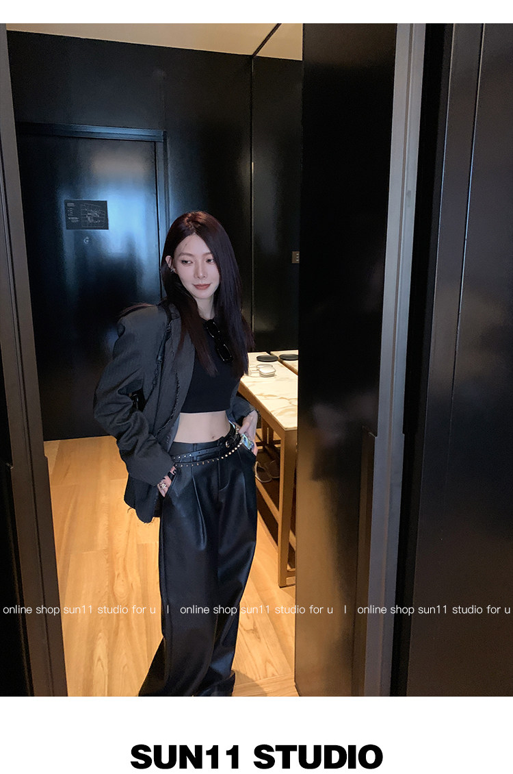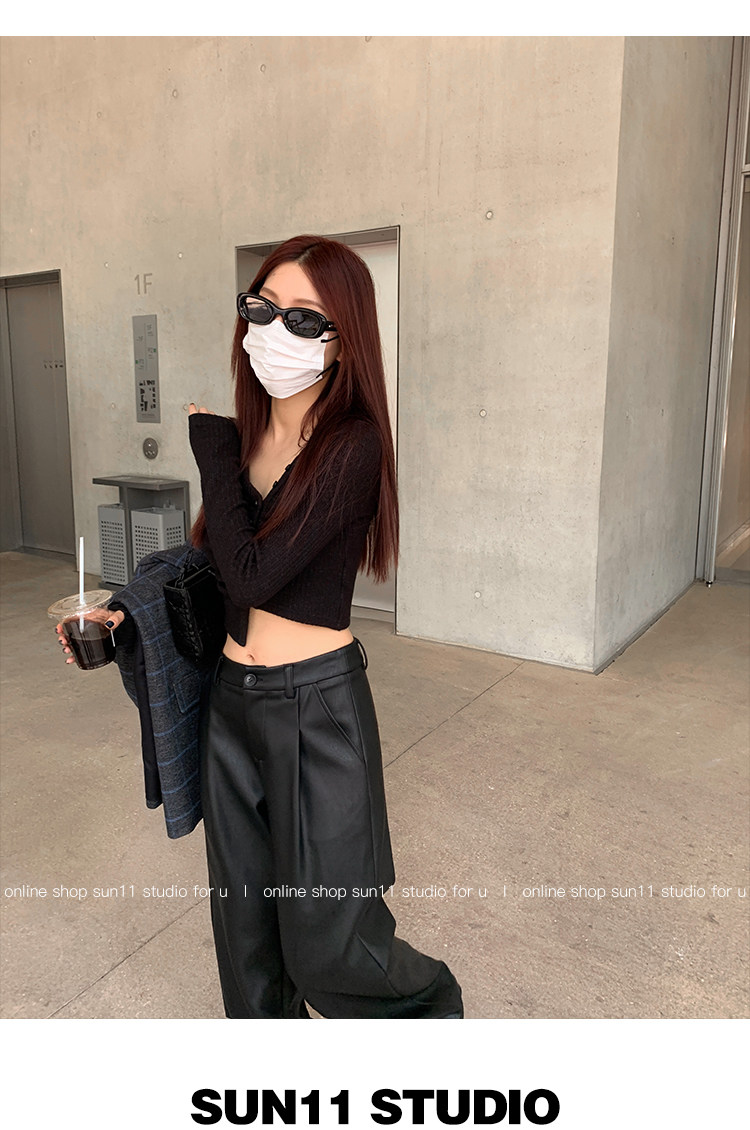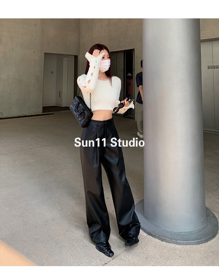 Черные весенние летние полиуретановые штаны, (в наличии на складе), свободный прямой крой