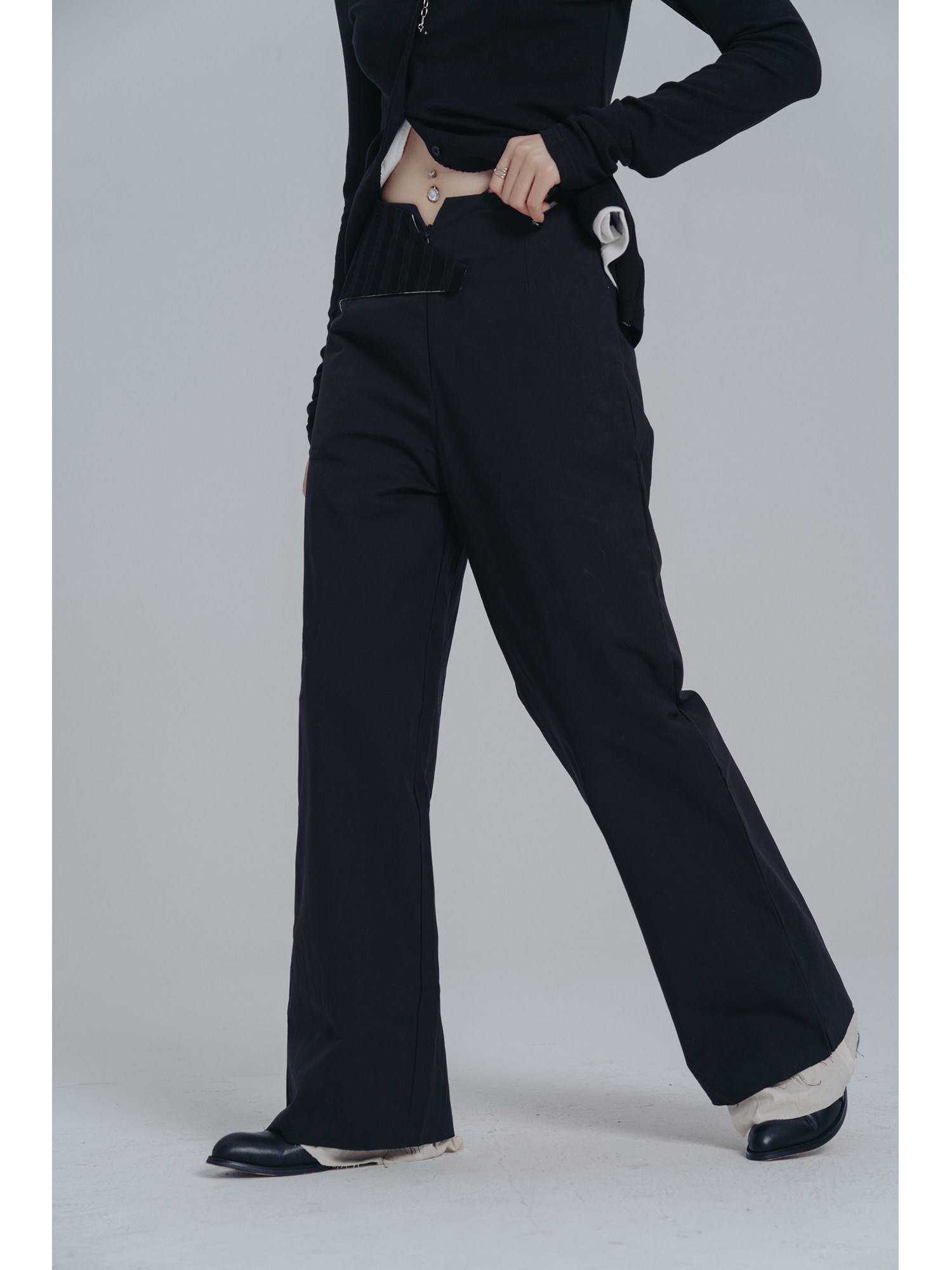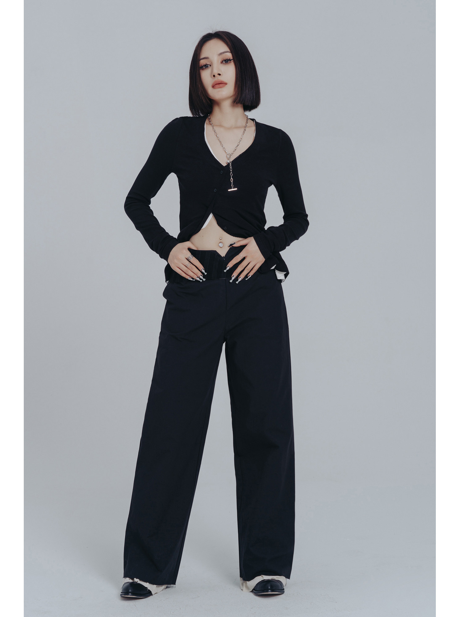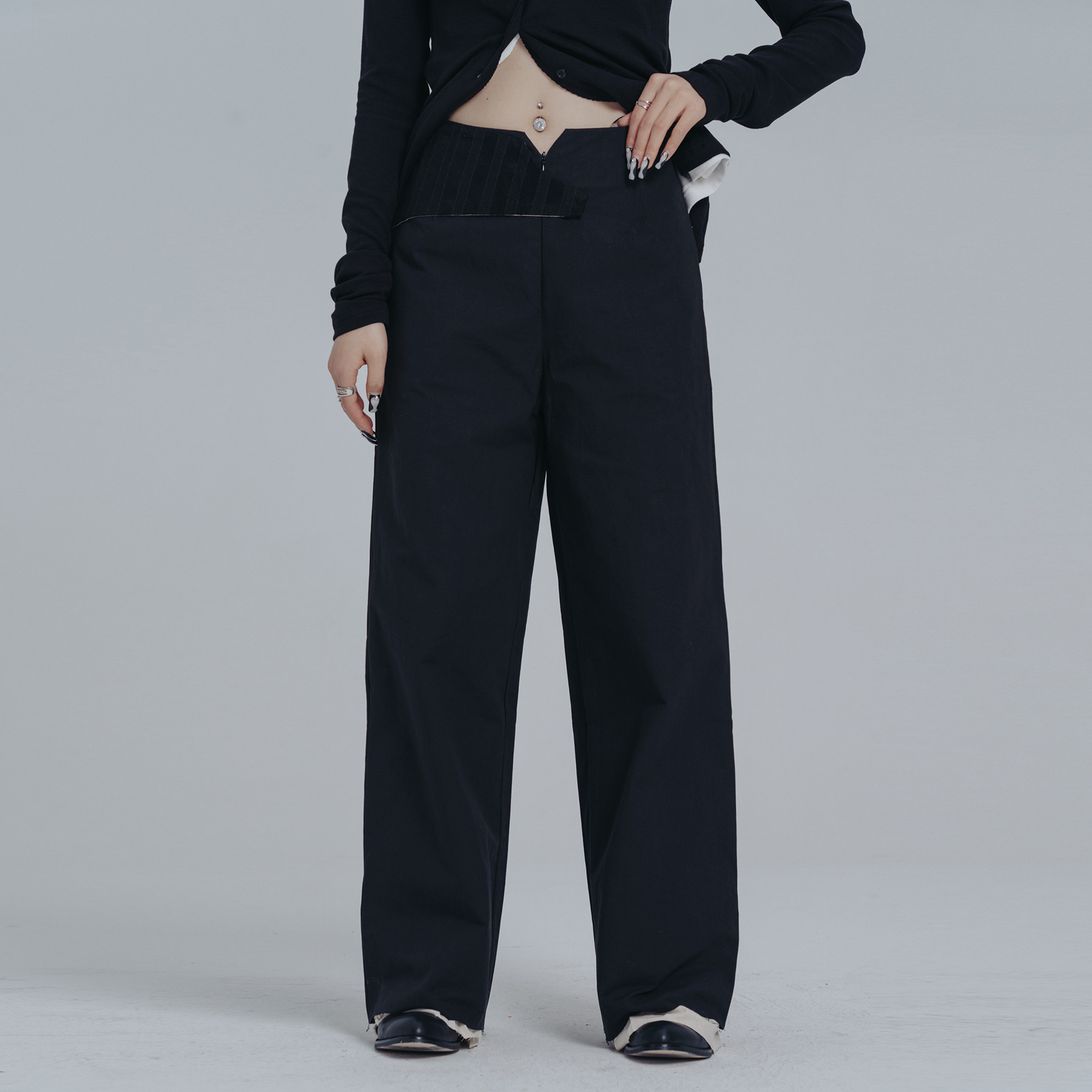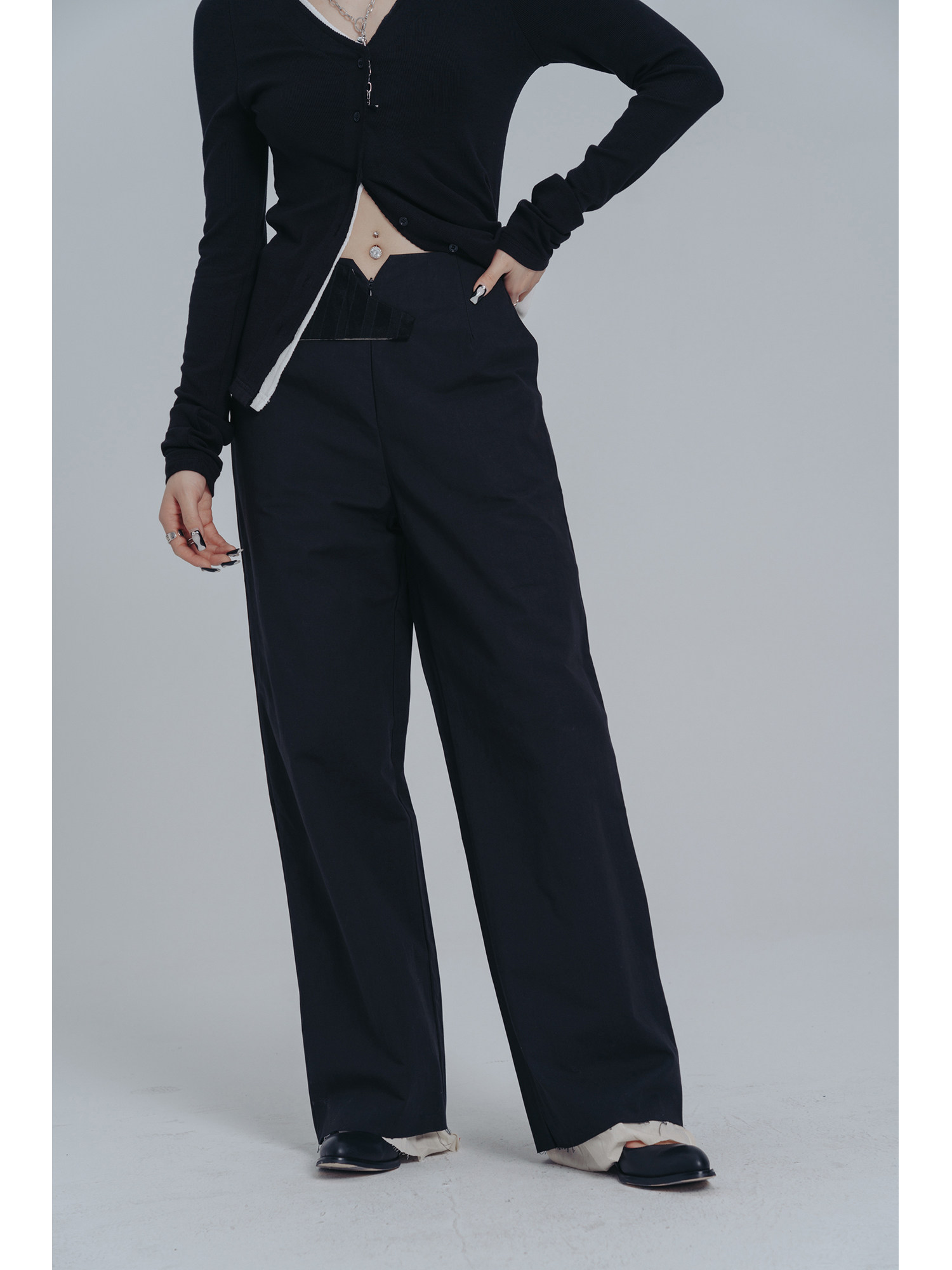 ПРОСТЫЕ ЧЕРНЫЕ 2024 весна и осень новый стиль темный пояс украшения унисекс поддельные прямые брюки из двух предметов для женщин