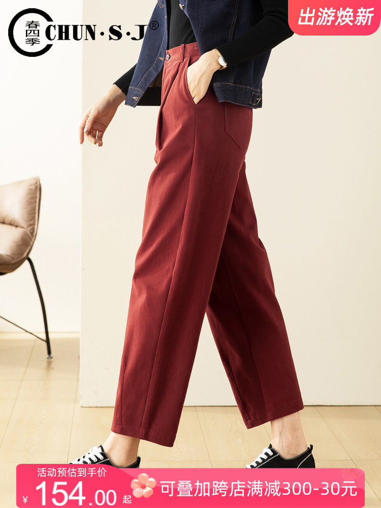 Осенние красные штаны, оверсайз, свободный прямой крой, высокая талия