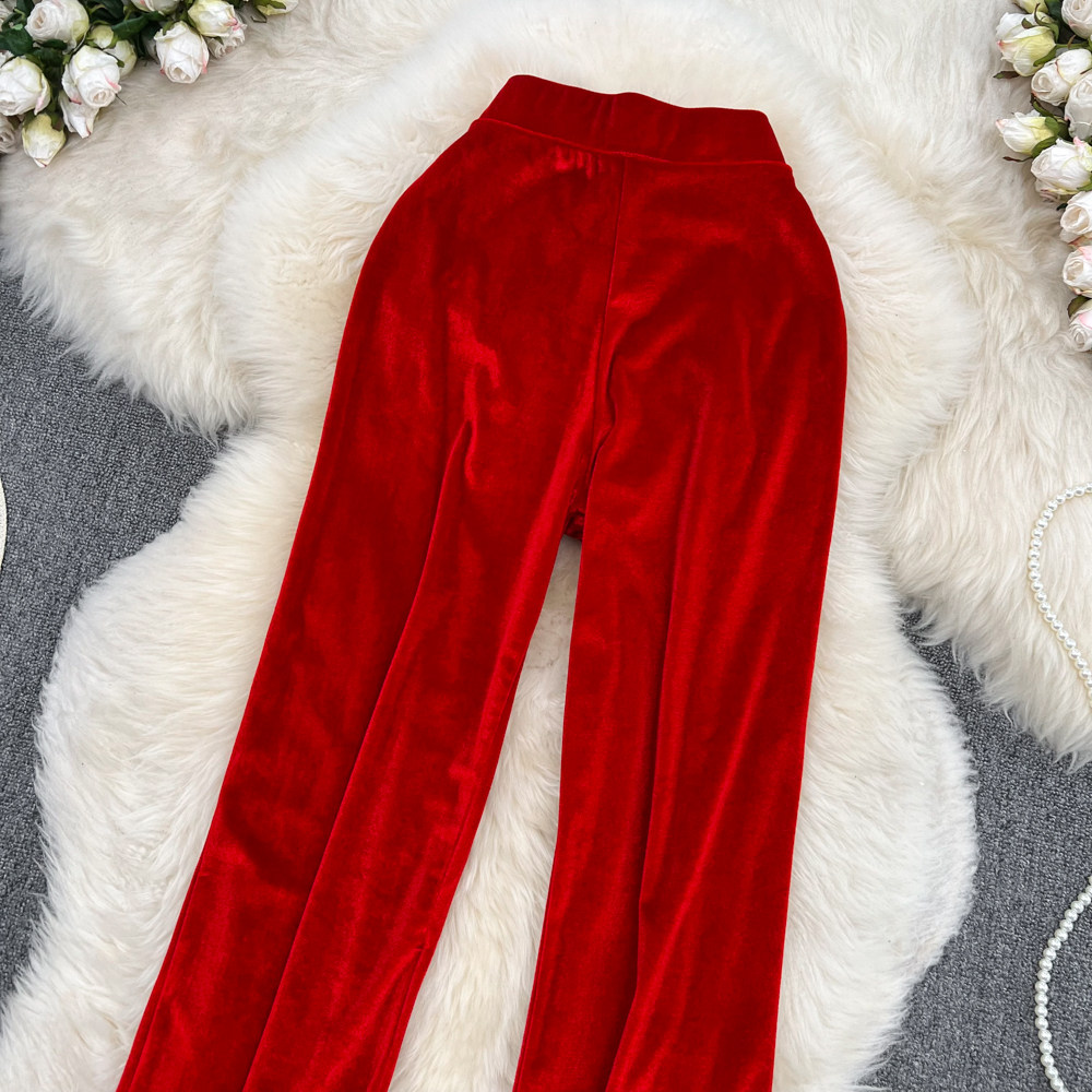 Бархатные осенние приталенные штаны, высокая талия, оверсайз, эластичная талия