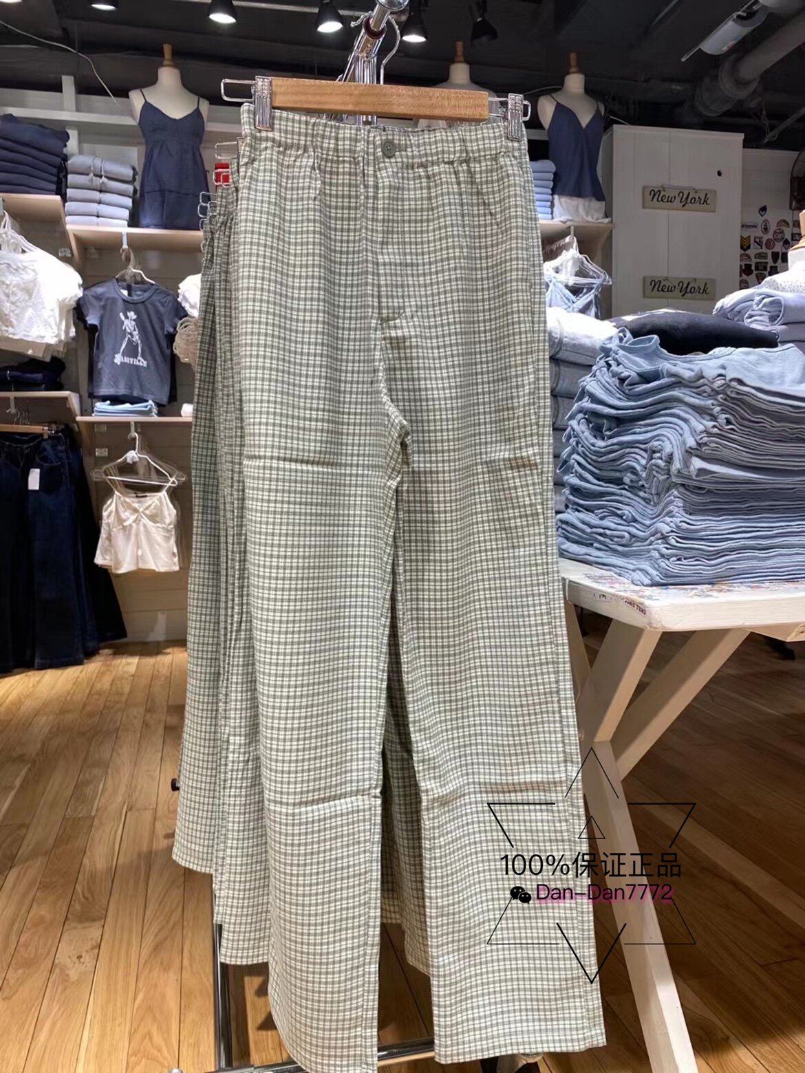BrandyMelville, внутреннее закупочное агентство Tilden Pants, зеленые и белые повседневные брюки с эластичной резинкой в клетку и высокой талией.